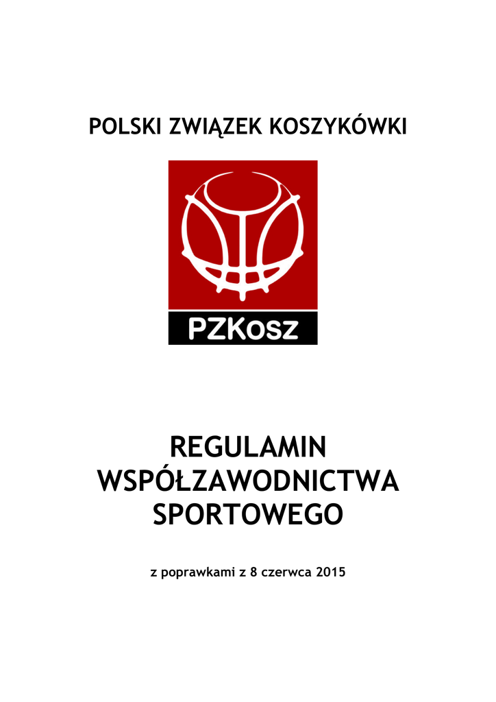 POLSKI ZWIĄZEK KOSZYKÓWKI REGULAMIN WSPÓŁZAWODNICTWA SPORTOWEGO z poprawkami z 8 czerwca 2015 SPIS TREŚCI rozdział strony I Postanowienia ogólne II Licencja klubowa III Licencja okresowa klubu IV paragrafy 3-9 1–6 10 - 12 7 – 14 13 15 Licencja zawodnika 14 - 15 16 – 23 V Licencja okresowa zawodnika 16 - 20 24 – 32 VI Licencja trenera 21 - 24 33 – 39 VII Licencja okresowa trenera 25 - 28 40 – 49 VII Licencja sędziego 29 - 30 50 – 56 IX Licencja okresowa sędziego 31 - 34 57 – 65 X Licencja okresowa komisarza 35 - 36 66 – 72 XI Licencja agenta 37 - 38 73 – 75 XII Reprezentowanie klubów i zmiany barw klubowych 39 - 45 76 – 84 XIII Umowa szkoleniowa, umowa o współpracy 46 - 48 85 – 86 XIV Organizacja rozgrywek i meczów 49 - 57 87 – 103 XV Sędziowie i komisarze 58 - 59 104 – 105 XVI Zawodnik-uczeń Szkoły Mistrzostwa Sportowego PZKosz 60 - 62 106 - 110 XVII Postępowanie dyscyplinarne i kary administracyjne 63 - 65 111 – 116 XVIII Odwołania 66 - 68 117 – 123 XIX Reprezentowanie barw narodowych 69 124 – 125 XX Klasy sportowe 70 126 XXI Postanowienia końcowe 71 127 – 131 Spis załączników 72 2 ROZDZIAŁ I POSTANOWIENIA OGÓLNE § 1. Niniejszy 1. Regulamin reguluje zasady organizacji, prowadzenia oraz uczestnictwa we współzawodnictwie sportowym w koszykówce organizowanym na terenie Polski przez Polski Związek Koszykówki (w skrócie PZKosz) oraz podmioty działające z jego upoważnienia lub powołane do zarządzania ligą zawodową, na podstawie przepisów ustawy z dnia 25 czerwca 2010 roku o sporcie. 2. Przepisy regulaminu mają zastosowanie do wszystkich klubów, zawodników, trenerów i innych osób reprezentujących kluby lub zawodników, a także do sędziów, komisarzy i innych osób biorących udział w organizowaniu i prowadzeniu współzawodnictwa sportowego w koszykówce. § 2. We współzawodnictwie sportowym w koszykówce definiuje się następujące określenia: 1. klub – osoba prawna w formie klubu sportowego, zgodnie z zapisami Ustawy o Sporcie, prowadząca działalność w zakresie sportu i uczestnicząca lub zamierzająca uczestniczyć we współzawodnictwie sportowym organizowanym przez PZKosz lub na jego zlecenie; 2. klub macierzysty – klub, w którym zawodnik rozpoczął udział we współzawodnictwie sportowym w koszykówce; 3. klub aktualny – ostatni klub, z którym zawodnik ma lub miał podpisany kontrakt lub podpisane zobowiązanie do reprezentowania barw klubowych, z wyłączeniem klubu, którego barwy zawodnik reprezentował na podstawie umowy szkoleniowej lub umowy o wypożyczeniu; 4. zawodnik – osoba fizyczna posiadająca licencję uprawniającą do uczestnictwa we współzawodnictwie sportowym w koszykówce; 5. zawodnik zagraniczny – zawodnik nie posiadający obywatelstwa polskiego; 6. zawodnik miejscowy - zawodnik, który: 1) posiada prawo gry w reprezentacji Polski lub 3 2) posiadał licencję okresową na grę w rozgrywkach organizowanych przez lub na zlecenie PZKosz przez co najmniej trzy sezony w okresie pomiędzy 12 a 20 rokiem życia lub 3) w okresie do 30 czerwca 2014 roku posiadał licencję zawodnika PZKosz (stałą). zawodnik–wychowanek – zawodnik, który po raz pierwszy zmienia barwy klubowe 7. (z wyłączeniem postanowień § 61 ust. 4) spełniający łącznie następujące warunki: 1) ukończył lub ukończy co najmniej 12 lat w roku, w którym dokonywana jest zmiana barw klubowych, 2) w macierzystym klubie brał udział w grze w okresie co najmniej dwóch sezonów przed zmianą przynależności klubowej. 3) uczestniczył we współzawodnictwie sportowym w koszykówce (także poza konkursem) w Polsce lub za granicą w co najmniej jednym sezonie w okresie trzech sezonów przed zmianą przynależności klubowej. Zawodnik wypożyczony nadal posiada status wychowanka o ile spełnia powyższe warunki. Okres wypożyczenia nie jest zaliczany do okresu wymienionego w punkcie 2. 8. zawodnik wolny – zawodnik, który nie ma podpisanego ważnego kontraktu lub zobowiązania do reprezentowania barw klubowych lub zawodnik, który nie uczestniczył we współzawodnictwie sportowym w koszykówce w Polsce lub za granicą w okresie trzech pełnych sezonów; 9. zawodnik własny – zawodnik, który: 1) w poprzednim sezonie był zawodnikiem tego klubu i przed dniem zgłoszenia do rozgrywek nie zmieniał barw klubowych lub, 2) w danym sezonie rozgrywkowym posiadał już ważną licencję okresową do tego klubu uprawniającą do gry w innej klasie rozgrywkowej lub, 3) po raz pierwszy przystępuje do współzawodnictwa sportowego w koszykówce; 10. zawodnik-uczeń – zawodnik objęty programem szkolenia Polskiego Związku Koszykówki, który jest uczniem Szkoły Mistrzostwa Sportowego PZKosz lub jest absolwentem SMS PZKosz do czasu pierwszej zmiany barw klubowych; 11. zawodnik–reprezentant Polski – zawodnik, który w momencie podejmowania decyzji o zmianie barw klubowych na podstawie niniejszego Regulaminu brał udział w oficjalnych zawodach FIBA lub w kwalifikacjach do nich w jakiejkolwiek kategorii wiekowej w ciągu ostatnich dwóch lat poprzedzających rozpoczęcie procedury zmiany barw klubowych; 4 12. zawodnik–reprezentant województwa – zawodnik, który w momencie podejmowania decyzji o zmianie barw klubowych na podstawie niniejszego Regulaminu jest członkiem kadry wojewódzkiej i brał udział w minimum 50% dni szkoleniowych kadry. Reprezentantem województwa jest też zawodnik, który w sezonie poprzedzającym rozpoczęcie procedury zmiany barw klubowych brał udział przynajmniej w 50% dni szkolenia wojewódzkiego; 13. wypożyczenie – możliwość czasowego reprezentowania innego klubu niż klub macierzysty lub klub aktualny, nie związana ze zmianą barw klubowych zawodnika; 14. zmiana barw klubowych – transfer zawodnika z jednego klubu do innego klubu niezwiązany z podpisaniem umowy o wypożyczeniu lub umowy szkoleniowej; 15. Promesa Listu Czystości – pisemne przyrzeczenie