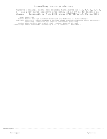 Szczegółowy kosztorys ofertowy Naprawa izolacji dachu nad