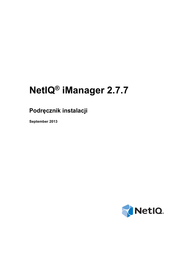 NetIQ® iManager 2.7.7 Podręcznik instalacji September 2013 Informacje prawne NINIEJSZY DOKUMENT I OPISANE W NIM OPROGRAMOWANIE SĄ DOSTARCZANE ZGODNIE Z WARUNKAMI UMOWY LICENCYJNEJ LUB UMOWY O POUFNOŚCI, KTÓRYM PODLEGAJĄ. Z WYJĄTKIEM PRZYPADKÓW WYRAŹNIE SPRECYZOWANYCH W TAKIEJ UMOWIE LICENCYJNEJ LUB UMOWIE O POUFNOŚCI, FIRMA NETIQ CORPORATION UDOSTĘPNIA NINIEJSZY DOKUMENT I OPISANE W NIM OPROGRAMOWANIE W STANIE „TAK JAK SĄ” BEZ ŻADNYCH GWARANCJI, ANI WYRAŹNYCH, ANI DOROZUMIANYCH, W SZCZEGÓLNOŚCI BEZ GWARANCJI DOROZUMIANYCH CO DO WARTOŚCI HANDLOWEJ LUB PRZYDATNOŚCI DO OKREŚLONEGO CELU. NIEKTÓRE KRAJE NIE ZEZWALAJĄ NA WYŁĄCZANIE GWARANCJI WYRAŹNYCH LUB DOROZUMIANYCH W ODNIESIENIU DO PEWNYCH TRANSAKCJI, W ZWIĄZKU Z TYM TO OŚWIADCZENIE MOŻE NIE DOTYCZYĆ KONKRETNEGO UŻYTKOWNIKA. Dla zachowania klarowności każdy moduł, adapter lub inny podobny materiał („Moduł”) jest licencjonowany zgodnie z warunkami i postanowieniami Umowy licencyjnej użytkownika oprogramowania dla odpowiedniej wersji produktu lub oprogramowania firmy NetIQ, którego dotyczy lub z którym współpracuje, i uzyskując dostęp do Modułu albo kopiując lub używając go użytkownik zgadza się przestrzegać tych warunków. Jeśli użytkownik nie wyraża zgody na warunki Umowy licencyjnej użytkownika oprogramowania, nie ma prawa do używania Modułu, uzyskiwania do niego dostępu ani kopiowania go i musi zniszczyć wszystkie kopie Modułu oraz skontaktować się z firmą NetIQ w celu uzyskania dodatkowych instrukcji. Niniejszego dokumentu i opisanego w nim oprogramowania nie wolno wypożyczać, sprzedawać ani oddawać bez uprzedniej pisemnej zgody firmy NetIQ Corporation, chyba że przepisy prawa stanowią inaczej. Z wyjątkiem przypadków wyraźnie sprecyzowanych w takiej umowie licencyjnej lub umowie o poufności, żadnej części tego dokumentu, jak i opisanego w nim oprogramowania, nie wolno powielać, przechowywać w systemach udostępniania danych ani przesyłać w żadnej formie i żadnymi środkami — elektronicznymi, mechanicznymi lub w inny sposób — bez uprzedniej pisemnej zgody firmy NetIQ Corporation. Niektóre firmy, nazwiska i dane wymienione w tym dokumencie służą celom ilustracyjnym i mogą nie reprezentować prawdziwych firm, osób ani danych. Niniejszy dokument może zawierać niedokładności techniczne lub błędy drukarskie. Zamieszczone tu informacje są okresowo zmieniane. Zmiany te mogą być wprowadzane do nowych wydań tego dokumentu. Firma NetIQ Corporation może w każdej chwili wprowadzić ulepszenia lub zmiany w oprogramowaniu opisanym w niniejszym dokumencie. Ograniczone prawa rządu Stanów Zjednoczonych: Jeśli oprogramowanie i dokumentacja są nabywane przez rząd USA, głównego wykonawcę lub podwykonawców rządu USA (na dowolnym szczeblu), bądź w ich imieniu, zgodnie z przepisami 48 C.F.R. 227.7202-4 (w przypadku nabycia dla Ministerstwa Obrony) oraz 48 C.F.R. 2.101 i 12.212 (w przypadku nabycia dla innych jednostek), to prawa rządu do oprogramowania i dokumentacji, w tym prawa do użytkowania, modyfikowania, powielania, wydawania, wykonywania, wyświetlania bądź ujawniania oprogramowania lub dokumentacji, będą pod każdym względem podlegać prawom i ograniczeniom licencji komercyjnej podanym w umowie licencyjnej. © 2013 NetIQ Corporation i jej podmioty stowarzyszone. Wszelkie prawa zastrzeżone. Informacje o znakach towarowych firmy NetIQ można znaleźć na stronie https://www.netiq.com/company/legal/. Spis treści Informacje o niniejszym podręczniku i bibliotece Informacje o firmie NetIQ Corporation 5 7 1 Instalowanie programu iManager 1.1 1.2 1.3 1.4 1.5 1.6 1.7 9 Wersje serwerowa i kliencka programu iManager 2.7.7. . . . . . . . . . . . . . . . . . . . . . . . . . . . . . . . . . . . 9 1.1.1 Produkty obsługiwane przez program iManager . . . . . . . . . . . . . . . . . . . . . . . . . . . . . . . . . 10 1.1.2 Produkty obsługiwane przez program iManager Workstation . . . . . . . . . . . . . . . . . . . . . . . 11 1.1.3 Zgodność wstecz . . . . . . . . . . . . . . . . . . . . . . . . . . . . . . . . . . . . . . . . . . . . . . . . . . . . . . . . . 12 Wymagania wstępne . . . . . . . . . . . . . . . . . . . . . . . . . . . . . . . . . . . . . . . . . . . . . . . . . . . . . . . . . . . . . 12 1.2.1 Ogólne wymagania wstępne . . . . . . . . . . . . . . . . . . . . . . . . . . . . . . . . . . . . . . . . . . . . . . . . 12 1.2.2 Wymagania wstępne w systemie Linux . . . . . . . . . . . . . . . . . . . . . . . . . . . . . . . . . . . . . . . . 12 1.2.3 Wymagania wstępne w systemie Windows . . . . . . . . . . . . . . . . . . . . . . . . . . . . . . . . . . . . . 14 1.2.4 Wymagania wstępne dotyczące programu iManager Workstation w systemie Linux . . . . . 14 Certyfikaty samopodpisane . . . . . . . . . . . . . . . . . . . . . . . . . . . . . . . . . . . . . . . . . . . . . . . . . . . . . . . . 15 1.3.1 Linux . . . . . . . . . . . . . . . . . . . . . . . . . . . . . . . . . . . . . . . . . . . . . . . . . . . . . . . . . . . . . . . . . . 16 1.3.2 Windows . . . . . . . . . . . . . . . . . . . . . . . . . . . . . . . . . . . . . . . . . . . . . . . . . . . . . . . . . . . . . . . 17 Pobieranie i instalowanie dodatków typu plug-in podczas instalacji . . . . . . . . . . . . . . . . . . . . . . . . . 18 Instalowanie nowej wersji programu iManager . . . . . . . . . . . . . . . . . . . . . . . . . . . . . . . . . . . . . . . . . 19 1.5.1 Program iManager Server w systemie Linux . . . . . . . . . . . . . . . . . . . . . . . . . . . . . . . . . . . . 19 1.5.2 Program iManager Server w systemie Windows . . . . . . . . . . . . . . . . . . . . . . . . . . . . . . . . . 22 1.5.3 Program iManager Workstation na klientach z systemem Linux . . . . . . . . . . . . . . . . . . . . . 25 1.5.4 Program iManager Workstation na klientach z systemem Windows . . . . . . . . . . . . . . . . . 26 Instalacja programu iManager Server w trybie bez sygnali