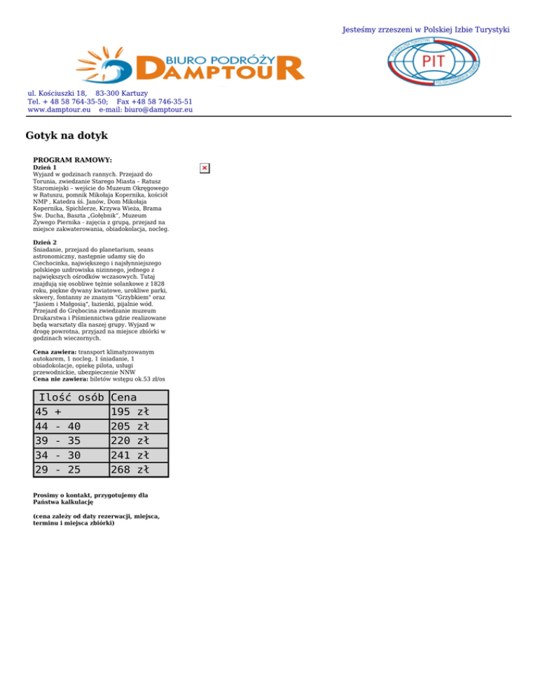 Gotyk na dotyk Ilość osób Cena 45 + 195 zł 44 - 40 205 zł 39