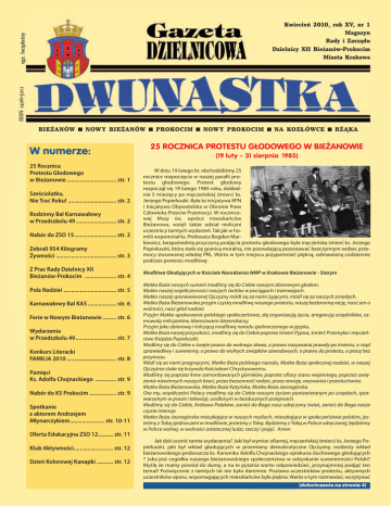 ISSN 1426-3211 egz. bezpłatny Kwiecień 2010, rok XV, nr 1 Magazyn Rady i Zarządu Dzielnicy XII Bieżanów-Prokocim Miasta Krakowa BIEŻANÓW NOWY BIEŻANÓW W numerze: 25 Rocznica Protestu Głodowego w Bieżanowie ................................. str. 1 Sześciolatku, Nie Trać Roku! ................................ str. 2 Rodzinny Bal Karnawałowy w Przedszkolu 49........................... str. 2 Nabór do ZSO 15............................ str. 2 Zebrali 954 Kilogramy Żywności ........................................ str. 3 Z Prac Rady Dzielnicy XII Bieżanów-Prokocim ..................... str. 4 Pola Nadziei ................................... str. 5 Karnawałowy Bal KAS ................... str. 6 Ferie w Nowym Bieżanowie ......... str. 6 Wydarzenia w Przedszkolu 49........................... str. 7 Konkurs Literacki FAMILIA 2010 ................................. str. 8 Pamięci Ks. Adolfa Chojnackiego .............. str. 9 Nabór do KS Prokocim .................. str. 9 Spotkanie z aktorem Andrzejem Młynarczykiem....................... str. 10-11 PROKOCIM NOWY PROKOCIM NA KOZŁÓWCE RŻĄKA 25 ROCZNICA PROTESTU GŁODOWEGO W BIEŻANOWIE (19 luty – 31 sierpnia 1985) W dniu 19 lutego br. obchodziliśmy 25 rocznice rozpoczęcia w naszej parafii protestu głodowego. Protest głodowy rozpoczął się 19 lutego 1985 roku, dokładnie 5 miesięcy po męczeńskiej śmierci ks. Jerzego Popiełuszki. Była to inicjatywa KPN ( Inicjatywa Obywatelska w Obronie Praw Człowieka Przeciw Przemocy). W rocznicowej Mszy św, oprócz mieszkańców Bieżanowa, wzięli także udział nieliczni uczestnicy tamtych wydarzeń. Tak jak w homilii wspomniał ks. Proboszcz Bogdan Markiewicz, bezpośrednią przyczyną podjęcia protestu głodowego była męczeńska śmierć ks. Jerzego Popiełuszki, która stała się granicą moralną, nie pozwalającą pozostawać bezczynnym wobec przemocy stosowanej władzę PRL. Warto w tym miejscu przypomnieć piękną, odmawianą codziennie podczas protestu modlitwę: Modlitwa Głodujących w Kościele Narodzenia NMP w Krakowie Bieżanowie - Starym Matko Boża naszych sumień modlimy się do Ciebie naszym zbiorowym głodem. Matko naszej współczesności naszych świtów w pociągach i tramwajach. Matko naszej sponiewieranej Ojczyzny módl się za nami żyjącymi, módl się za naszych zmarłych. Matko Boża Bieżanowska przyjm czystą modlitwę naszego protestu, naszą bezbronną rację, nasz sen o wolności, nasz głód nadziei. Przyjm Matko upokorzenie polskiego społeczeństwa, złą organizacją życia, arogancją urzędników, samowolą milicjantów, kłamstwami dziennikarzy. Przyjm jako zbiorową i milczącą modlitwę narodu zjednoczonego w języku. Matko Boża naszej przyszłości, modlimy się do Ciebie poprzez śmierć Pyjasa, śmierć Przemyka i męczeństwo Księdza Popiełuszki. Modlimy się do Ciebie o święte prawo do wolnego słowa, o prawo nazywania prawdy po imieniu, o rząd sprawiedliwy i suwerenny, o prawo do wolnych związków zawodowych, o prawo do protestu, o pracę bez przymusu. Módl się za nami pragnącymi, Matko Boża polskiego narodu, Matko Boża społecznej nadziei, w naszej Ojczyźnie stała się krzywda Kościołowi Chrystusowemu. Modlimy się poprzez krew zamordowanych górników, poprzez ofiary stanu wojennego, poprzez uwięzienie niewinnych naszych braci, przez bezsenność rodzin, przez rewizje, wezwania i przesłuchania. Matko Boża Bieżanowska, Matko Boża Katyńska, Matko Boża Jasnogórska. Oto my, współcześni Polacy modlimy się do Ciebie naszym życiem poniewieranym po urzędach, spotwarzanym w prasie i telewizji, usidlonym w bezdusznych przepisach. Modlimy się do Ciebie, Królowo Polaków, zanieś do Boga nasz udręczony świat, zanieś do Boga nasze czyste intencje. Matko Boża Jasnogórska mieszkająca w naszych myślach, mieszkająca w społeczeństwie polskim, jesteśmy z Tobą zjednoczeni w modlitwie, jesteśmy z Tobą. Będziemy z Tobą w Polsce udręczonej, będziemy w Polsce wolnej, w wolności ostatecznej ludzi, rzeczy i pojęć. Amen Oferta Edukacyjna ZSO 12.......... str. 11 Klub Aktywności.......................... str. 12 Dzień Kolorowej Kanapki ........... str. 12 Jak dziś ocenić tamte wydarzenia? Jaki był wymiar ofiarnej, męczeńskiej śmierci ks. Jerzego Popiełuszki, jaki był wkład głodujących w przemiany demokratyczne Ojczyzny, osobisty wkład bieżanowskiego proboszcza ks. Kanonika Adolfa Chojnackiego opiekuna duchowego głodujących ? Jaka jest cegiełka naszego bieżanowskiego społeczeństwa w odzyskanie suwerenności Polski? Myślę że mamy powód do dumy, a na te pytania warto odpowiedzieć, przynajmniej podjąć ten temat! Poświęcenie z tamtych lat nie było daremne. Postawa uczestników protestu, aktywnych uczestników oporu, wspomagających mieszkańców była piękna. Warto o tym rozmawiać, wczytywać (dokończenie na stronie 4) Sześciolatku, nie trać roku! nakład 6 tys. egz. WYDAWCA: Dzielnica XII Bieżanów-Prokocim REDAGUJE ZESPÓŁ: MICHAŁ MAJERCZAK – Redaktor Naczelny GRAŻYNA FIJAŁKOWSKA – Z-ca Redaktora Naczelnego PATRYCJA BIEŃ BARTOSZ GĄDOR KAZIMIERA JELONEK ZBIGNIEW KOŻUCH MAREK WALAWENDER ADRES REDAKCJI: ul. Kurczaba 3 tel./fax: 12 658 26 11 SKŁAD, ŁAMANIE, DRUK: EKODRUK tel./fax: 12 296 19 09 Redakcja zastrzega sobie prawo do skracania i korekty artykułów oraz opatrzenia ich własnymi tytułami. Artykułów nie zamówionych redakcja nie zwraca. Za treść artykułów i prawa autorskie wykorzystanych zdjęć odpowiadają autorzy tekstów. Wydawca nie ponosi odpowiedzialności za treść reklam. Rada Dzielnicy XII Bieżanów-Prokocim ul. Kurczaba 3 tel./fax: 12 658 26 11 e-mail: [email protected] www.dzielnica12.krakow.pl Sekretariat przyjmuje: Poniedziałek 1200–1500 Wtorek 1400–1700 Środa 1200–1500 Czwartek 1200–1500 Piątek 1200–1500 Dyżury Członków Zarządu: Przewodniczący: ZBIGNIEW KOŻUCH – piątek 1000–1200 Z-ca Przewodnicz