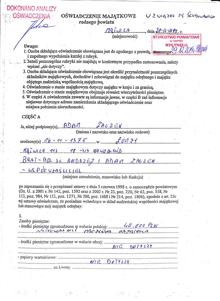 niej awne dotycąc e adresu .a m ieszkania qkładaj ące go oświad czeńe oraz