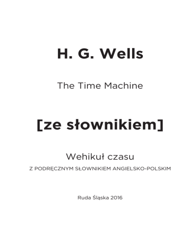 H. G. Wells The Time Machine [ze słownikiem] Wehikuł czasu Z PODRĘCZNYM SŁOWNIKIEM ANGIELSKO-POLSKIM Ruda Śląska 2016 CONTENTS Vocabulary of Most Common Words...................................................................................... 7 Chapter 1 .............................................................................................................................................. 27 Chapter 2 ............................................................................................................................................. 41 Chapter 3 ............................................................................................................................................. 51 Chapter 4............................................................................................................................................. 61 Chapter 5 ............................................................................................................................................. 77 Chapter 6............................................................................................................................................. 103 Chapter 7 ............................................................................................................................................. 113 Chapter 8 ............................................................................................................................................. 125 Chapter 9............................................................................................................................................. 135 Chapter 10 ........................................................................................................................................... 147 Chapter 11 ............................................................................................................................................ 153 Chapter 12 ........................................................................................................................................... 161 Vocabulary.......................................................................................................................................... 171 Chapter I The Time Traveller (for so it will be convenient to speak of him) was expounding a recondite matter to us. His grey eyes shone and twinkled, and his usually pale face was flushed and animated. The fire burned brightly, and the soft radiance of the incandescent lights in the lilies of silver caught the bubbles that flashed and passed in our glasses. Our chairs, being his patents, embraced and caressed us rather than submitted to be sat upon, and there was that luxurious after-dinner atmosphere when thought roams gracefully free of the trammels of precision. And he put it to us in this way—marking the points with a lean forefinger—as we sat and lazily admired his earnestness over this new paradox (as we thought it) and his fecundity. 'You must follow me carefully. I shall have to controvert one or two ideas that are almost universally accepted. The geometry, for instance, they taught you at school is founded on a misconception.' 'Is not that rather a large thing to expect us to begin upon?' said Filby, an argumentative person with red hair. 'I do not mean to ask you to accept anything without reasonable ground for it. You will soon admit as much as I need from you. You know of course that a mathematical line, a admired - DGPLUHSRG]LZLDý animated - DQLPDWHRů\ZLDý argumentative - NâyWOLZ\ brightly - jaskrawo, promiennie bubbles - EXEEOHSLHQLýVLę PXVRZDýEĊEHOHN burned - EXUQVSDOLýSâRQĊý caressed - FDUHVVSLHœFLý controvert - ]DNZHVWLRQRZDý convenient - wygodny earnestness - SRZDJDV]F]HURœý embraced - (embrace) REHMPRZDýXœFLVN expounding - (expound) REMDœQLDQLHWâXPDF]HQLH fecundity - SâRGQRœý urodzajnoœý flashed - IODVKPLJDýEâ\VN flushed - (flush) ]DUXPLHQLýVLę forefinger - SDOHFZVND]XMĊF\ geometry - geometria gracefully - ZG]LęF]QLH incandescent - MDU]ĊF\VLę instance - SU]\SDGHNSU]\NâDG lazily - leniwie, bezczynnie lean - RSLHUDýVLęSU]HFK\OLýVLę RGFK\OLýVLęV]F]XSâ\FKXG\ lilies - OLO\OLOLD/LO\- LPLę luxurious - luksusowy mathematical - matematyczny misconception - EâęGQH Z\REUDůHQLHOXESU]HNRQDQLH paradox - paradoks patents - (patent) oczywisty, MDZQ\RSDWHQWRZDý precision - precyzja radiance - EODVNSURPLHQQRœý recondite - tajemniczy, ]DZLâ\ roams - URDPEâĊNDýVLę ZâyF]\ýVLęZęGUyZND shone - VKLQHœZLHFLýEâ\V]F]Hý silver - VUHEURVUHEUQ\ submitted - VXEPLWVNâDGDý ]âRů\ýSU]HGâRů\ýGRVWDUF]Dý taught - (teach) nDXF]Dý trammels - (trammel) SęWD, przeszkody twinkled - WZLQNOHPLJRWDý universally - powszechnie abstractions - (abstraction) abstrakcje breadth - V]HURNRœý cigar - cygaro consciousness - œZLDGRPRœý SU]\WRPQRœý cube - SRGQLHœýV]HœFLDQNRVWND dimensions - (dimension) Z\PLDUZLHONRœý don - (don't) do not - QLHURELý duration - czas, okres flesh - FLDâRIOHVKEUXVKV]F]RWNDGRFLDâD incline - SU]HFK\OLýVNâRQLý SRFK\âRœý infirmity - niemoc instantaneous - natychmiastowy intermittently - sporadycznie, nieregularnie lamp - lampa mere - sam, samodzielny nil - E\ýůDGQ\P]HURQLF zaledwie overlook - Z\FKRG]LýQD JyURZDýSU]HRF]\ý pensive - ]DP\œORQ\ proceeded - (proceed) NRQW\QXRZDýLœýGDOHMSRGĊůDý psychologist - psycholog relight - ponowne zapalenie spasmodic - sporadyczny, nieregularny, spazmatyczny thickness - JUXERœýJęVWRœý warstwa unreal - nierealny, nie z tej ziemi 7KH7LPH0DFKLQH line of thickness nil, has no real existence. They taught you that? Neither has a mathematical plane. These things are mere abstractions.' 'That is all right,' said the Psychologist. 'Nor, having only length, breadth, and thickness, can a cube have a real existence.' 'There I object,' said Filby. 'Of course a solid body may exist. All real things—' 'So most people think. But wait a momen