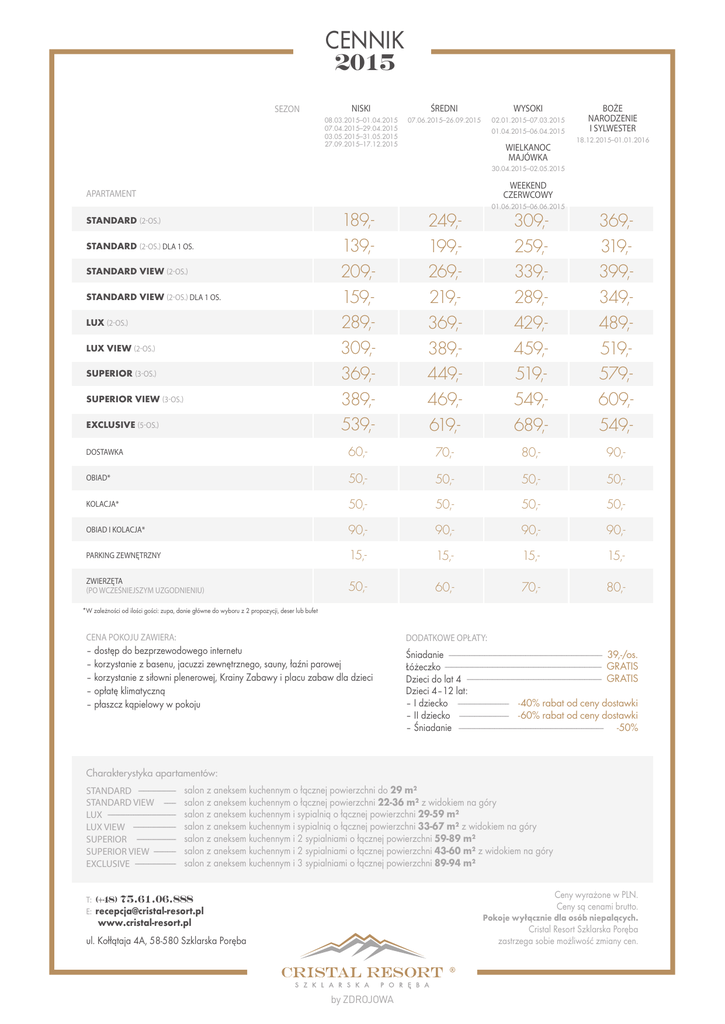 cennik 2015 - Cristal Resort Szklarska Poręba