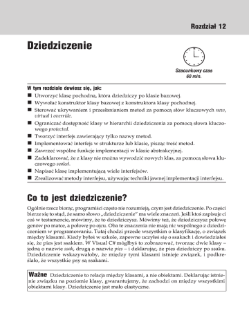 któr¹ musisz znaæ, ¿eby tworzyæ klasy dziedzicz¹ce po innych klasach. Poznawszy tê