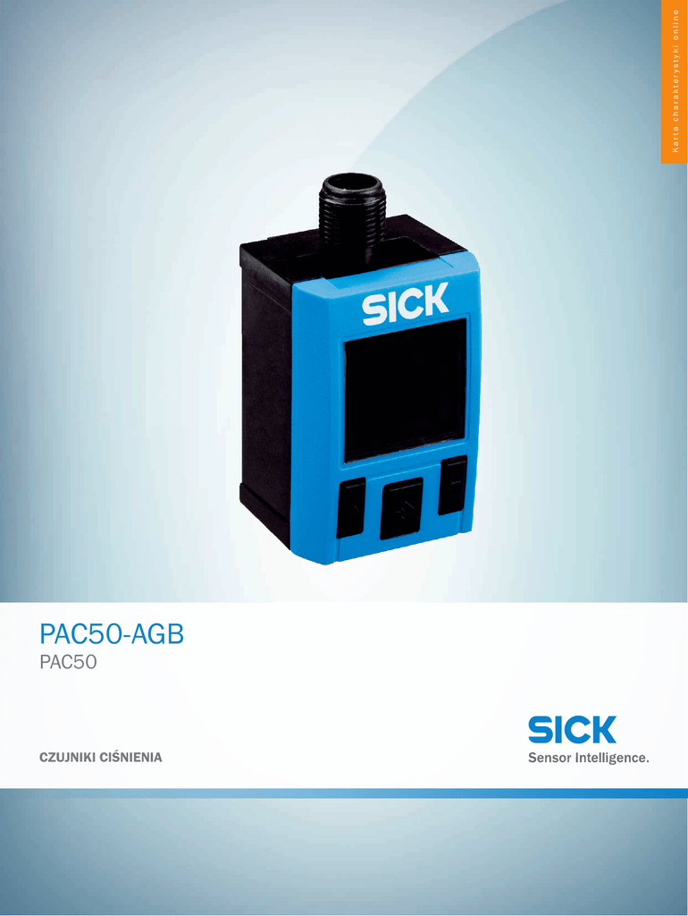 Karta charakterystyki online PAC50-AGB PAC50 CZUJNIKI CIŚNIENIA PAC50-AGB | PAC50 CZUJNIKI CIŚNIENIA A B C D E F Informacje do zamówienia Typ Nr artykułu PAC50-AGB więcej wersji urządzeń i akcesoriów 1062946 www.sick.com/PAC50 Rysunek może się różnić Szczegółowe dane techniczne H I J K L M N O P Q R S T Cechy Medium Suche sprężone powietrze Rodzaj ciśnienia Ciśnienie względne Zakres pomiarowy –1 bar ... 0 bar Temperatura procesu 0 °C ... +60 °C Analogowy sygnał wyjściowy i dopuszczalna Opcjonalny, 4 mA ... 20 mA / 0 V… 10 V. Automatyczne przełączanie w zależności od przyłączonego obciążenia lub ustawione na stałe. Sygnał wyjściowy z możliwością inwersji: 20 mA ... impedancja RA 4 mA / 10 V ... 0 V Impedancja obciążenia przy wyjściu prądu < 600 Ω Impedancja obciążenia przy wyjściu napięcia > 3 kΩ Ustawienie punktu zerowego Maks. +5% zakresu Sygnał wyjściowy PNP/NPN/Push-Pull + 4 mA ... 20 mA / 0 V ... 10 V Wyświetlacz LCD z podświetleniem LED (zielone/czerwone), elektronicznie odwracany o 180° Wskaźnik ciśnienia: 4 pozycje, 16 segmentów Jednostka ciśnienia przełączana na wyświetlaczu: bar, MPa, kPa, psi i inHg Aktualizacja: 1000, 500, 200, 100 ms (programowalna) Czas inicjalizacji 300 ms Wydajność Nieliniowość ≤ ± 0,5 %, zakresu (Best Fit Straight Line, BFSL) wg IEC 61298-2 Dokładność ≤ ± 1,5 % zakresu wraz z nieliniowością, histerezą, odchyleniem od punktu zerowego i wartości końcowej (odpowiada odchyleniu pomiarowemu wg IEC 61298-2) Dokładność nastaw wyjść przełączających ≤ ± 0,2% zakresu Niepowtarzalność ≤ ± 0,2 % zakresu Znamionowy zakres temperatur +10 °C ... +60 °C Mechanika/elektryka Przyłącze procesowe 2 x G ¼ 1) Materiał obudowy Korpus: poliwęglan, Klawiatura: TPE, Mocowanie na szynie montażowej: POM, Uszczelki: NBR 1) 2) 2 Od spodu: gwint wewn. G ¼, z tyłu: gwint wewn. G ¼, oba zgodne z DIN ISO 16030. W stanie podłączonym, z odpowiednim wtykiem po drugiej stronie. CZUJNIKI AKP | SICK Karta charakterystyki online | 2017-01-25 17:44:28 Informacje mogą ulec zmianie bez powiadomienia PAC50-AGB | PAC50 CZUJNIKI CIŚNIENIA Napięcie zasilające 17 V DC ... 30 V DC Pobór prądu Maks. 40 mA przy L+ = 24 V DC Bezpieczeństwo elektryczne Klasa ochrony: III Ochrona przepięciowa: 32 V DC Odporność przeciwzwarciowa: QA, Q1, Q2 do M i do L+ Zabezpieczenie przed zamianą biegunów: L+ do M Zgodność CE Dyrektywa EMC: 2004/108/WE, EN 61326-2-3 Masa czujnika Ok. 40 g Stopień ochrony IP 65 / IP 67 (wg IEC 60529) 2) Klasa ochrony III ✔ Certyfikat RoHS ✔ Certyfikat cRUus ✔ 1) 2) Od spodu: gwint wewn. G ¼, z tyłu: gwint wewn. G ¼, oba zgodne z DIN ISO 16030. W stanie podłączonym, z odpowiednim wtykiem po drugiej stronie. Dane dotyczące otoczenia Temperatura otoczenia 0 °C ... +60 °C Temperatura składowania –20 °C ... +80 °C Względna wilgotność powietrza ≤ 90 % Odporność na udary Maks. 30 g, xyz, zgodnie z DIN EN 60068-2-27 (11 ms, wstrząs mechaniczny) Obciążenie przez drgania Maks. 5 g (10 ... 150 Hz), xyz, zgodnie z DIN EN 60068-2-6 Klasyfikacje ECl@ss 5.0 27371814 ECl@ss 5.1.4 27371814 ECl@ss 6.0 27371814 ECl@ss 6.2 27371814 ECl@ss 7.0 27371814 ECl@ss 8.0 27371814 ECl@ss 8.1 27371814 ECl@ss 9.0 27371814 ETIM 5.0 EC000243 ETIM 6.0 EC000243 UNSPSC 16.0901 41112409 2017-01-25 17:44:28 | Karta charakterystyki online Informacje mogą ulec zmianie bez powiadomienia CZUJNIKI AKP | SICK 3 PAC50-AGB | PAC50 CZUJNIKI CIŚNIENIA Rysunek wymiarowy (Wymiary w mm) 9.5 (0.37) G1/4 M12x1 25.8 (1.02) 9.5 (0.37) 35 (1.38) H I J K L M N O P Q R S T 13.6 (0.54) 12 (0.47) 35 (1.38) 13.6 (0.54) Spód: gwint wewnętrzny G ¼, tył: gwint wewnętrzny G ¼ 63 (2.48) A B C D E F G1/4 Typ przyłącza Wtyk okrągły M12 x 1, 4 piny 3 4 2 1 Output signals Type code Electrical connection Pin assignment 2 x digital PAC50-xxA M12 x 1, 4 pins L+ = 1, M = 3, Q1 = 4, Q2 = 2 1 x digital + analog PAC50-xxB M12 x 1, 4 pins L+ = 1, M = 3, Q1 = 4, QA = 2 1 x IO-Link/digital + digital PAC50-xxD M12 x 1, 4 pins L+ = 1, M = 3, C/Q1 = 4, Q2 = 2 ① L+: plusowe przyłącze zasilania ② M: minusowe przyłącze zasilania ③ Q1: wyjście przełączające 1 ④ C/Q1: z IO-Link: komunikacja / wyjście przełączające 1 ⑤ Q2: wyjście przełączające 2 ⑥ QA: wyjście analogowe 4 CZUJNIKI AKP | SICK Karta charakterystyki online | 2017-01-25 17:44:28 Informacje mogą ulec zmianie bez powiadomienia PAC50-AGB | PAC50 CZUJNIKI CIŚNIENIA Instrukcje dotyczące montażu d 4 d 3 d2 a 1 Zalecane akcesoria więcej wersji urządzeń i akcesoriów www.sick.com/PAC50 Krótki opis Typ Nr artykułu BEF-MAWLMNTS-PAC5 2069198 BEF-MACTRLPS-PAC5 2069200 Uchwyty montażowe i płytki mocujące Zestaw do montażu ściennego, element mocujący do montażu ściennego presostatu PAC50, Element mocujący: poliwęglan, Śruby: stalowe, ocynkowane Uchwyty zaciskowe i do ustawienia położenia Zestaw montażowy do tablicy rozdzielczej, umożliwiający zamontowanie presostatu PAC50 w tablicy rozdzielczej. Maksymalna grubość tablicy rozdzielczej 5 mm., Rama montażowa tablicy rozdzielczej i element mocujący: poliwęglan, Śruby: stalowe, ocynkowane 2017-01-25 17:44:28 | Karta charakterystyki online Informacje mogą ulec zmianie bez powiadomienia CZUJNIKI AKP | SICK 5 Karta charakterystyki online SICK W SKRÓCIE Firma SICK należy do czołowych producentów inteligentnych czujników i rozwiązań wykorzystujących czujniki do zastosowań przemysłowych. Wyjątkowa gama produktów i usług stwarza idealną podstawę dla bezpiecznego i wydajnego sterowania procesami, ochrony ludzi przed wypadkami i unikania zanieczyszczenia środowiska. Mamy szerokie doświadczenie w różnych branżach i znamy występujące w nich procesy oraz wymagania. Nasze inteligentne czujniki zapewniają klientom dokładnie to, czego im potrzeba. W centrach aplikacji w Europie, Azji i Ameryce Północnej rozwiązania systemowe są testowane i optymaliz