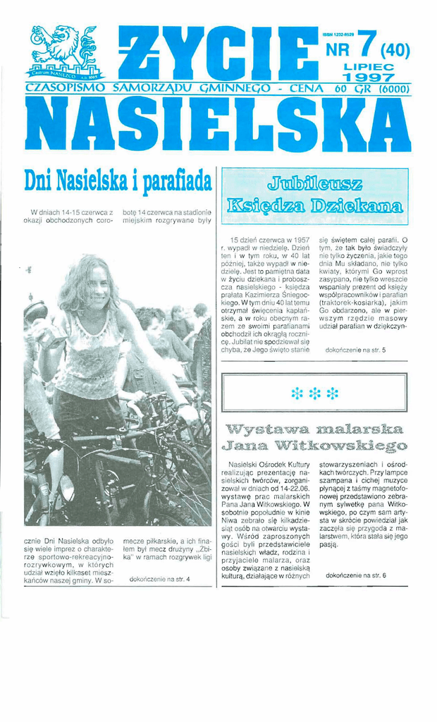 'NR 7 (40) n LIPIEC 1997 60 (jR (6000) Dni Nasielska iparafiada W dniach 14-15 czerwca z okazji obchodzonych cora· bot~ 14 czerwca na stadionie miejskim rozgrywane byly 15 dzien czerwca w 1957 r. wypadl w niedzielfil. Ozien ten i w tym roku. w 40 lat poznlej. takZe wypadl w nie dzlell;!. Jest to pamil;!tna data w zyciu dziekana i probosz cza nasielskiego - ksi~dza pralata Kazimlerza Sniegoc kiego. W tym dniu 40 lat temu otrzymal swi~cenia kaptar'i skie, a w roku obecnym ra zem ze swoimi parafianami obchodzil ich okrqglCj roczni Clil. Jubilat nie spodziewal si~ chyba, ze Jego SWI17to stanie II cznie Oni Nasielska odbylo si~ wiele imprez 0 charakte rze sportowo-rekreacyjno rozrywkowyrn, w ktorych udzia! wzi~lo kilkaset rniesz kanc6w naszej gminy. W 50 mecze pilkarskie, a ich fina lem byl mecz druzyny "Zbi ka" w ramach rozgrywek ligi dokonczenie na str 4 • Nasielski Osrodek Kultury realizujqC prezentacjlil na sielsklch two rcow, zorgan i lowal w dniach ad 14-22.06. wyslaw~ prac malarskich Pana Jana Wilkowskiega. W sobolnie popoludnie w kinie Niwa zebralo si~ kilkadzie siqt os6b na otwarciu wysta wy. Wsr6d zapraszonych gosci byli przedstawiciele nasielskich wladz, rodzina i przyjaciele malarza, oraz osoby zwiqzane z nasielskCj kul1urq, dzialajqce w roznych si~ 5wiGtem calej parafii. 0 tym, ze tak bylo swiadczyly nie tylko zyczenia, jakie tego dnia Mu skladano, nie tylko kwiaty. ktorymi Go wprost zasypano, nie tylko wreszcie wspanialy prezent od ksilili.y wsp6!pracownik6w i parafian (traktorek-kosiarka), jakim Go obdarzono, ale w pier wszym rZ~dzie masowy udziaJ parafian w dzi~kczyn- dokoriczenie na sIr. 5 f. ~. .. - .• II slowarzyszeniach i osrod kac~I1'N6rczych. Przy lampce szampana i cichej muzyce plynqCej z tasmy rnagnelofo nowej przedstawiono zebra nym sylwetklil pana Wilko wskiego. pO czym sam arty s1a w skrocie powiedzial jak zacz~la silil przygoda z ma larS1'Nem, kt6ra stala sif;' jego paSJq. dokoriczenl8 na sIr. 6 , Z PRAC ORGANOW SAMORZl\DOWYCH- - - - - - - ' -----W czerwcu Zarzqd Miejski spotykal Sl~ dwukr01nie. a po czqtku posiedzenia w dni dzie wlqtego ustalono warunki przy znania przez Centrum Pomocy Spolec,z lej zapomogi zwralnej mieszkancow Nasielska w celu przepro vadzenia specjalfsiycz nego zabiegu przywracajqcego mu sprawnose ruchowq. W kolejnym punkcie zebranl zapoznall si~ ze sprawozda nlem Zarzqdu Gospodarkl Ko munalnej I Mieszkaniowej z lego dzlalalnosci w roku 1996. Z przedlozonego bilansu wynika, ze kondycja finansowa zakladu lJstabilizowala si~, a w por6wna nlU do roku ubleglego poprawila siC. Wynik finansowy jest dodat i. Analizie poddano zarow 0 dZla!alnosc finansowq jak i go podarczq. Aby utrzymac ten pomyslny wynik w roku biezCj cym jak I w raku przyszJym nle odzowna jest Jednak, wedlug Dyrektora ZGKiM, podwyzka oplal 1 czynszow. Czynsze nle byly podnoszone od dw6ch lat. Oddanie do uZy1ku nowej stacji uzdatnlania wody sprawl/a, ZC wzroslo zuzyc1e energil elektry cznej Pomieszczenia stacji Sq ogrzewane, a do leg a potrzebny jest lej opalowy. Wplywa to na koszty. Ustalono. ze Zarzqd na nastfilpnym posledze iu rozpa trzy projektowane stawki I przedstawi je Radzie na najbliz sze, sesjl. Dyrektor ZGKiM poin (ormowal rowniez ZarzC/d a pod lfiltych prZ6Z ki rowanq przez niego placowk~ dzialan majq cych na celu popraw~ stanu sa nitarnego naszej gminy. W dalszeJ czesci burmistrz zasygnalizowal problem doty CZqcy rozliczerl za oddanCj JUz do ui:y ku nasielskq SUW. W ceo lu jego rozwiqzania prowadzone b~dq rozmowy z wykonawcCj. Pani Skarbnrk poinformowala czlonk6w Zarzqdu 0 tym, ze w dalszym iqgu nie sp!ywajq za leglosci ad firm z lytulu podatku ad nieruchomosci za ubiegle la ta. T akze i w roku obecnym wie le zaklad6w lak z eklOra uspo lecznionego jak i prywatnego zalega z oplatami. W koncowej cz~sci narady rozpatrzono pisma skierowane do Zarzqdu: Gmmna Spoldziel nia "SCh" zwr6cila sit;! z prosbq o przesuni~cie terminu plalnos cl podatku od nieruchomosci za mieslqc maj i czerwlec. Sprawl;! zalatwiono zgodnie z sugesti q GS-u. Spoleczny Kornilet budo wy dragi Mi~koszyn - Cleksyn 2 ZYGIE NASIELSKA prZ8z Zaborze, Lelewo prosi 0 klasyfikacji drogi. co przyspieszyloby jei utwardzenie przy udziale Agencji oder nizacji i Restrukluryzacji Rolnic twa. Poslanowiono dokonac rozeznania do kogo I na Jakrm odcinku ta dTOga alezy. Kilku mieszkarlcGW domow komunal nych wyrazilo chGc wykupu zaj mowanych lokali prOSZqC jedno cze' nie rozlozenie naleznOSCI na raty. Zarzqd przys1al na to, pod warunkiem jednak, ze ca lose b~dzie zap/acona maksy ma/me w 24 mieslf,lcznych ra tach. Drugle czerweowe posledze nle Zarzqdu odbylo si~ dnia dwudzlestego szostego. W pier wszej CZ~SCI mialo one chara kter spotkania z dyrektoraml zk61 podstawQwych z terenu gminy. Na poczqtku Burmislrz przekazal zebranym szereg bie zqcych mformacji. Z kolei dyre klorzy oszczeg6lnych szkol porn'ormowali Zarzqd 0 (a cach, jakJe kier wane przez nich pi cowkl wykonaly w za konczonym roku szkolnym, pla nach prac do konca roku kalen darzowego i potrzebaeh posz czegolnyeh szk61 w naJblizszei przyszlosci. Biorqc pod uwag~ wieloletnle zaniedbania wynlka jq e z hronlcznego nledofman sowania zkol oraz skromne srodki, jakie obecna Rada mag la przeznaczyc na oswiatfil gminnCj, nalezy stwierdzi', ze dokonanla szk61 w dziedzinie gospodarczej Sq naprawdl? Im ponuj~ce Zmieniano sposob ogrzewanla, malowano klasy, korytarze I e/ewacj~ zewn!iltrz nC!, poprawiano urzqdzenia sa nitarne, urzqdzano boiska szkolne. Wszystko to byto moz liwe dzif;!ki olbrzymiem zaan gai:owani ayrekcji szk6l, rad pedagogicznych. rodzieDw, spolecznosci lokalnej. Zdoby1o dodatkowe srodki finansowe, wiele prae wykonano spolecz nie. Plany, jakie zaprezentowali dyrektorzy na najblizszq przy sz.lose q bardzo mbitne. Bu( mistrz w imieniu Zarzqdu wyra zll zadowolenie z podeJmowa nyeh przez dyreklor6w dzialari na rzecz wzbogacania przez nlch budzetow kierowanych przez nich placawek. stronie dydaktycznej za konczonego roku szkolnego rnowila przedslawicielka Kura torium O