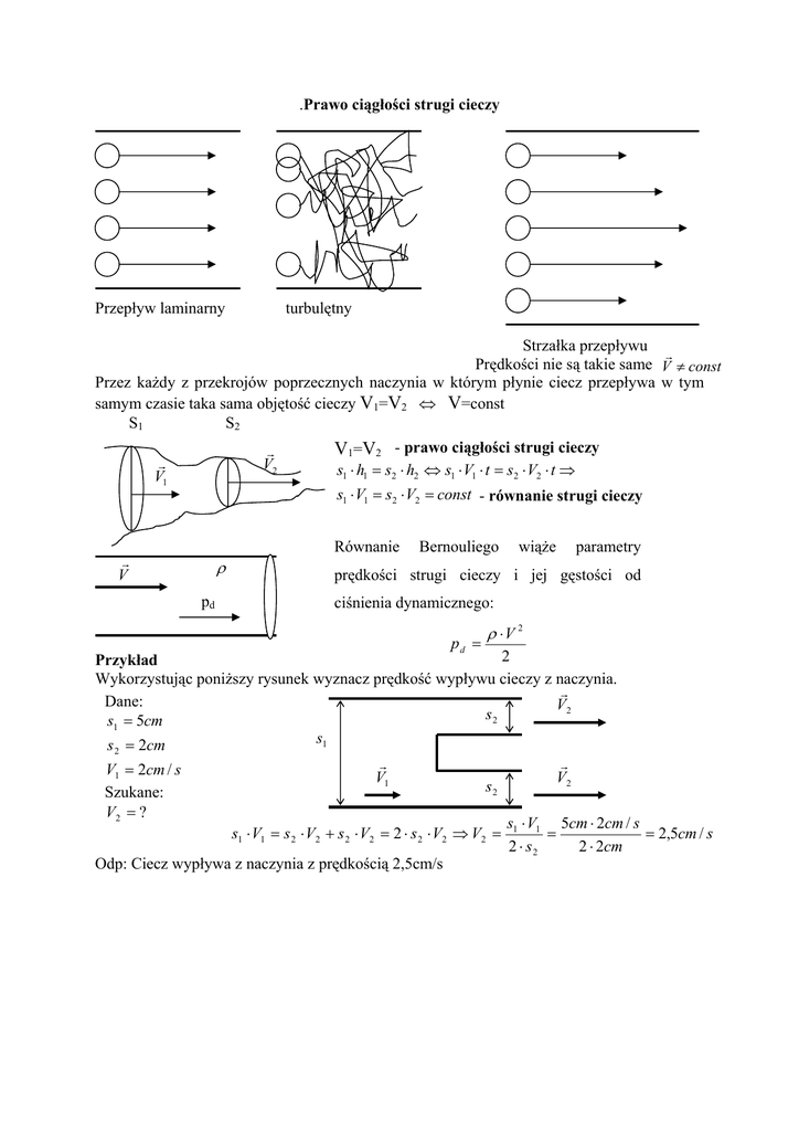 41. Prawo ciągłości strugi cieczy. Prawo Bernouliego
