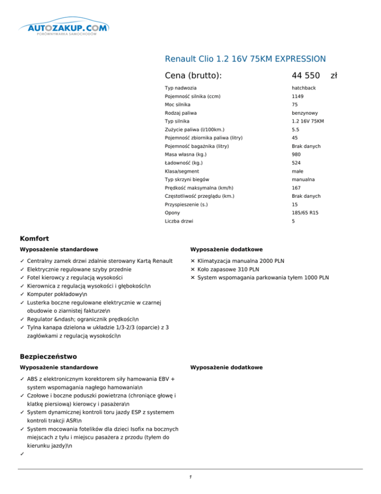 Renault Clio 1.2 16V 75KM EXPRESSION Cena