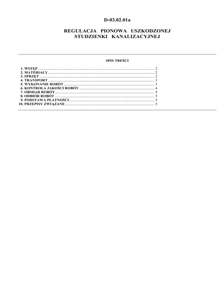 D-03.02.01a REGULACJA PIONOWA USZKODZONEJ STUDZIENKI