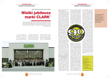 Wózki CLARK obchodzą 90-tą rocznicę istnienia Wielki jubileusz marki CLARK* Rodzime Louisville (USA) było miejscem obchodzenia szacownego jubileuszu 90-lecia marki CLARK, marki solidnych wózków widłowych znanej na całym świecie, również w Polsce. Clark Material Handling Co. z wielką pompą świętował w dniach 14-17 maja br. jubileusz 90 lecia wyprodukowania w Louisville w 1917 roku pierwszego na świecie wózka przemysłowego. – To jest znacząca rocznica dla marki CLARK i dla wszystkich naszych dealerów na świecie. Cieszymy się, że w tę rocznicę CLARK znalazł miejsce wśród głównych graczy 58 – dostawców wózków widłowych. Clark jest „built to last”! Stworzyliśmy wydajny system dystrybucji części zamiennych i zaplecze finansowe wspierające naszych dystrybutorów. Firma jest dumna ze swego dziedzictwa i patrzy entuzjastycznie w przyszłość – powiedział podczas głównej uroczystości w siedzibie głównej firmy w Louisville Dennis Nowoczesny Magazyn 3/2007 Lawrance, Prezes i CEO Clark Material Handling Co. Obchody jubileuszu 90-lecia w stanie Kentucky uświetniła seria trwających tydzień atrakcji. Wzięło w nich udział ponad 300 amerykańskich i światowych dealerów CLARKa, przedstawicieli lokalnych rządów i innych dostojnych gości. Wśród głównych atrakcji znalazły się otwarte spotkanie koktajlowe w głównej siedzibie CLARKa w Louisville połączone ze zwiedzaniem siedziby firmy i linii produkcyjnej. Całość uzupełniła wizyta w głównym centrum dystrybucji części zamiennych o powierzchni 16 560 m 2 w Luisville oraz wytworna kolacja w eleganckiej sali zabytkowego hipodromu Keeneland Race Course w Louisville. Galę wieczorną w salach hipodromu zaszczyciło swą obecnością 280 gości z 31 krajów. Wśród nich dealerzy firmy, prominenci szczebla zarządzającego firmy, emerytowani pracownicy oraz wielu obecnych dostawców. Podczas jubileuszu zaprezentowano nowości sprzętu logistycznego, miedzy innymi kolejny spalinowy wózek widłowy nowej generacji GEN2 o udźwigu 6-8 ton oraz najnowsze, niezwykle zwrotne „dziecko 2007” wśród elektrycznie napędzanych wózków widłowych – GEX. Można je było zobaczyć i przetestować podczas targów LTS TRANSPORTA w Poznaniu na stoisku firmy Elektroprogram Sp. z o. o. – bezpośredniego przedstawiciela marki CLARK w Polsce. Firma Elektroprogram na rynku polskim działa od czterdziestu lat, posiada zatem bogate doświadczenie i znajomość rynku logistycznego. Przedsiębiorstwo Elektroprogram to firma rodzinna, wyłącznie z polskim kapitałem. Zostało założone w 2000 roku, świadcząc usługi związane z obsługą i naprawą pojazdów mecha- nicznych. Jednakże początki firmy sięgają roku 1966, kiedy to pod szyldem „Zakład Elektryczny Włodzimierz Mańka„ wykonywano usługi związane z instalacjami elektrycznymi, przyłączami kablowymi oraz naprawami przedmiotów gospodarstwa domowego AGD. Zakład czynnie współpracował z instytutami naukowymi i wyższymi uczelniami technicznymi w Wielkopolsce. W latach osiemdziesiątych zakład przyjął nazwę ELEKTROPROGRAM Serwis Włodzimierz Mańka, Jarosław Mańka Sp.j., by od roku 2003 działać pod nazwą ELEKTROPROGRAM Sp. z o.o.. Jednym z obszarów działalności rynkowej była produkcja srebrnych styków do wózków widłowych, oparta na nowoczesnych rozwiązaniach w tej dziedzinie. Z upływem czasu przedsiębiorstwo rozwijało się i poszerzało swoja działalność, stając się w roku 1986 oficjalnym przedstawicielem handlowym producentów wózków widłowych marek działających na rynku polskim. W roku 1994 ELEKTROPROGRAM rozszerza swą ofertę produktową o wysokiej klasy amerykańskie wózki widłowe marki CLARK, a w 1998 roku uzupełnia ja o przeciwwybuchowe 4-kierunkowe wózki marki SICHESCHMIDT, których jest jedynym dealerem Nowoczesny Magazyn 3/2007 na rynku polskim do tej pory. Już w latach 90-tych podstawowym założeniem działalności firmy ELEKTROPROGRAM była sprawna i szybka obsługa serwisowa klientów. Rozumiejąc wymogi stawiane przez rozwijający się rynek, Dział Serwisu rozpoczął pracę w trybie 24 –godzinnym. Wraz z dynamicznym rozwojem firmy, sukcesywnie rozbudowywano również zaplecze m a g a z y n o w e o r y g i n a ln y c h części zamiennych do wózków widłowych oferowanych marek. W roku 1998 otwarte zostało przedstawicielstwo handlowo-serwisowe, z magazynem części zamiennych w Szczecinie. W kolejnych latach struktury handlowe wzmocnione zostają o przedstawicieli handlowo-serwisowych na Śląsku, we Wrocławiu, Warszawie oraz w Lublinie. Dalszy rozwój firmy staje się coraz bardziej związany z marką CLARK, która ze zdwojoną siłą koncent r u j e się na realizacji swych celów, jakimi są ciągły wzrost technologiczny i udoskonalanie swych flagowych produktów. Ponadto w zamierzeniach firmy jest rozwój całego programu logistycznego, a także zintensyfikowanie swej współpracy z globalnie agitującymi klientami. * Art. sponsorowany Bezpośredni przedstawiciel na Polskę: Elektroprogram Sp. z o.o. ul. Młyńska 58 62-052 Komorniki k. Poznania www.clark.org.pl 59 Firma Elektroprogram na rynku polskim działa od czterdziestu lat, posiada zatem bogate doświadczenie i znajomość rynku logistycznego.