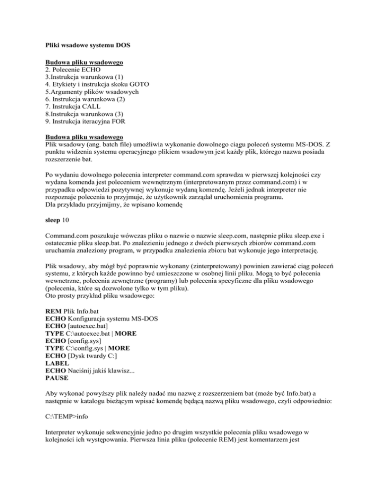 Pliki wsadowe systemu DOS Budowa pliku wsadowego 2