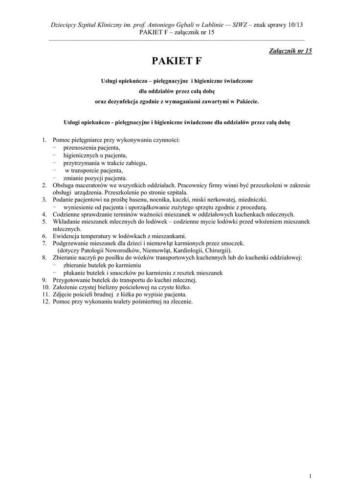 Załącznik nr 15 - Dziecięcy Szpital Kliniczny im. prof. Antoniego Gębali