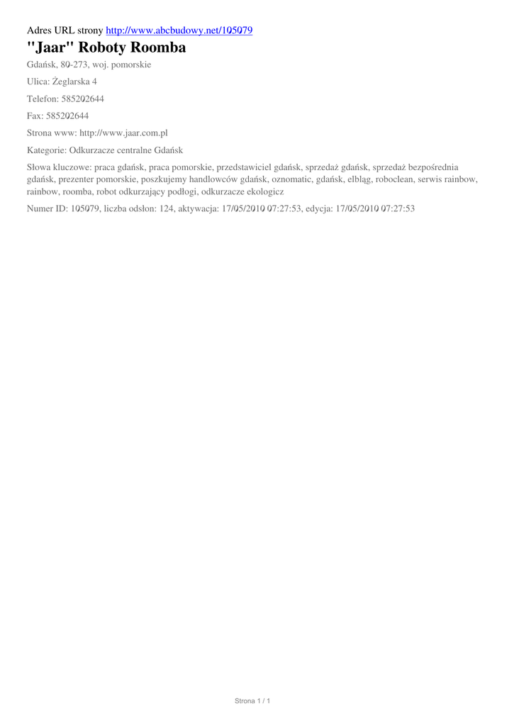 "Jaar" Roboty Roomba, Gdansk, Zeglarska 4