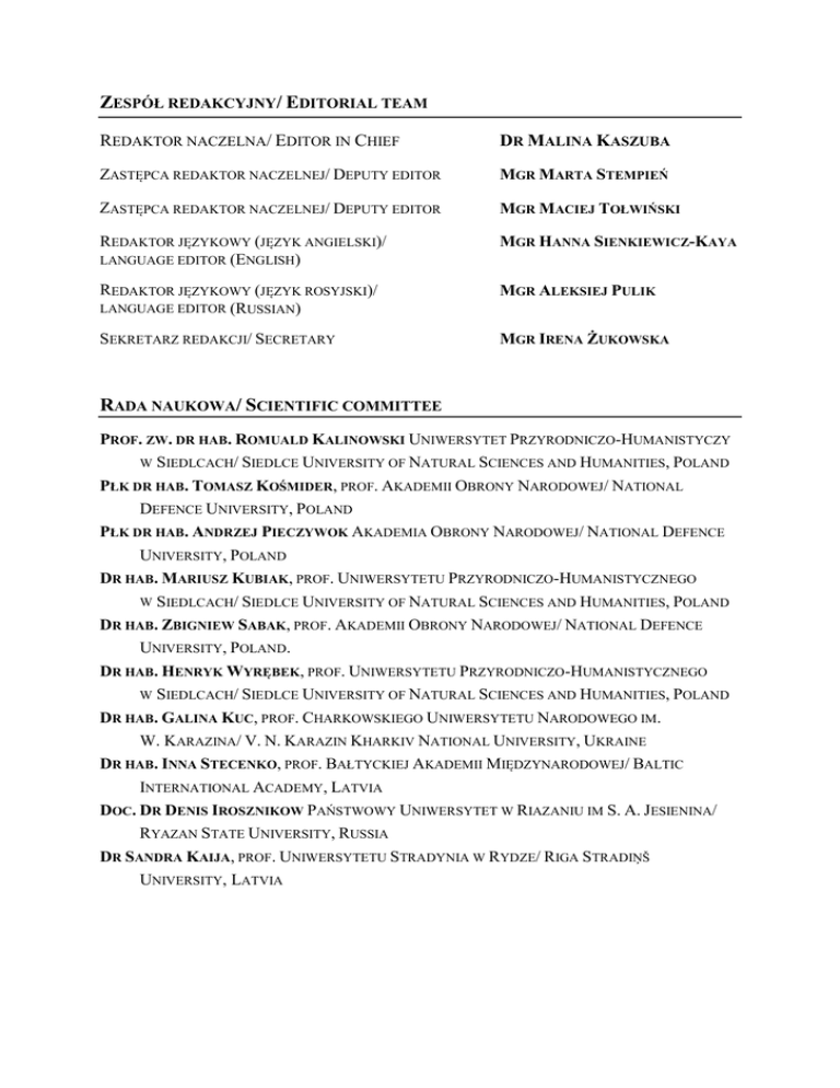 ZESPÓŁ REDAKCYJNY/ EDITORIAL TEAM REDAKTOR NACZELNA/ EDITOR IN CHIEF DR MALINA KASZUBA ZASTĘPCA REDAKTOR NACZELNEJ/ DEPUTY EDITOR MGR MARTA STEMPIEŃ ZASTĘPCA REDAKTOR NACZELNEJ/ DEPUTY EDITOR MGR MACIEJ TOŁWIŃSKI REDAKTOR JĘZYKOWY (JĘZYK ANGIELSKI)/ LANGUAGE EDITOR (ENGLISH) MGR HANNA SIENKIEWICZ-KAYA REDAKTOR JĘZYKOWY (JĘZYK ROSYJSKI)/ LANGUAGE EDITOR (RUSSIAN) MGR ALEKSIEJ PULIK SEKRETARZ REDAKCJI/ SECRETARY MGR IRENA ŻUKOWSKA RADA NAUKOWA/ SCIENTIFIC COMMITTEE PROF. ZW. DR HAB. ROMUALD KALINOWSKI UNIWERSYTET PRZYRODNICZO-HUMANISTYCZY W SIEDLCACH/ SIEDLCE UNIVERSITY OF NATURAL SCIENCES AND HUMANITIES, POLAND PŁK DR HAB. TOMASZ KOŚMIDER, PROF. AKADEMII OBRONY NARODOWEJ/ NATIONAL DEFENCE UNIVERSITY, POLAND PŁK DR HAB. ANDRZEJ PIECZYWOK AKADEMIA OBRONY NARODOWEJ/ NATIONAL DEFENCE UNIVERSITY, POLAND DR HAB. MARIUSZ KUBIAK, PROF. UNIWERSYTETU PRZYRODNICZO-HUMANISTYCZNEGO W SIEDLCACH/ SIEDLCE UNIVERSITY OF NATURAL SCIENCES AND HUMANITIES, POLAND DR HAB. ZBIGNIEW SABAK, PROF. AKADEMII OBRONY NARODOWEJ/ NATIONAL DEFENCE UNIVERSITY, POLAND. DR HAB. HENRYK WYRĘBEK, PROF. UNIWERSYTETU PRZYRODNICZO-HUMANISTYCZNEGO W SIEDLCACH/ SIEDLCE UNIVERSITY OF NATURAL SCIENCES AND HUMANITIES, POLAND DR HAB. GALINA KUC, PROF. CHARKOWSKIEGO UNIWERSYTETU NARODOWEGO IM. W. KARAZINA/ V. N. KARAZIN KHARKIV NATIONAL UNIVERSITY, UKRAINE DR HAB. INNA STECENKO, PROF. BAŁTYCKIEJ AKADEMII MIĘDZYNARODOWEJ/ BALTIC INTERNATIONAL ACADEMY, LATVIA DOC. DR DENIS IROSZNIKOW PAŃSTWOWY UNIWERSYTET W RIAZANIU IM S. A. JESIENINA/ RYAZAN STATE UNIVERSITY, RUSSIA DR SANDRA KAIJA, PROF. UNIWERSYTETU STRADYNIA W RYDZE/ RIGA STRADIŅŠ UNIVERSITY, LATVIA 2|Strona ADRES REDAKCJI/ EDITORIAL TEAM OFFICE INSTYTUT NAUK SPOŁECZNYCH I BEZPIECZEŃSTWA, WYDZIAŁ HUMANISTYCZNY, UNIWERSYTET PRZYRODNICZO-HUMANISTYCZNY W SIEDLCACH, UL. ŻYTNIA 39, 08-110 SIEDLCE/ SOCIAL SCIENCES AND SECURITY INSTITUTE, FACULTY OF HUMANITIES, SIEDLCE UNIVERSITY OF NATURAL SCIENCES AND HUMANITIES, ŻYTNIA 39, 08-110 SIEDLCE, POLAND ZA WERSJĘ PIERWOTNĄ CZASOPISMA UZNAJE SIĘ WERSJĘ ELEKTRONICZNĄ DOSTĘPNĄ POD ADRESEM HTTP:/WWW.DESECURITATE.UPH.EDU.PL / THE ORIGINAL VERSION OF THE JOURNAL IS THE ELECTRONIC VERSION AVAILABLE AT THE HTTP:/WWW.DESECURITATE.UPH.EDU.PL KOREKTA/ PROFREADING: MGR IRENA ŻUKOWSKA SKŁAD I ŁAMANIE/ TYPESETTING: MGR MARTA STEMPIEŃ LOGOTYP/LOGOTYPE: ALEKSANDRA WOLSKA WYDAWCA/ PUBLISHER: INSTYTUT NAUK SPOŁECZNYCH I BEZPIECZEŃSTWA, WYDZIAŁ HUMANISTYCZNY, UNIWERSYTET PRZYRODNICZO-HUMANISTYCZNY W SIEDLCACH, UL. ŻYTNIA 39, 08-110 SIEDLCE/ SOCIAL SCIENCES AND SECURITY INSTITUTE, FACULTY OF HUMANITIES, SIEDLCE UNIVERSITY OF NATURAL SCIENCES AND HUMANITIES, ŻYTNIA 39, 08-110 SIEDLCE, POLAND HTTP://WWW.INSIB.UPH.EDU.PL © COPYRIGHT BY UNIWERSYTET PRZYRODNICZO-HUMANISTYCZNY W SIEDLCACH ADRES DO PRZESŁANIA ARTYKUŁÓW/ ARTICLES SUBBMISION ADDRESS REDAKCJA “DE SECURITATE ET DEFENSIONE. O BEZPIECZEŃSTWIE I OBRONNOŚCI” E-MAIL: [email protected] UNIWERSYTET PRZYRODNICZO-HUMANISTYCZNY W SIEDLCACH INSTYTUT NAUK SPOŁECZNYCH I BEZPIECZEŃSTWA DE SECURITATE ET DEFENSIONE O BEZPIECZEŃSTWIE I OBRONNOŚCI Nr1(1)/2015 desecuritate.uph.edu.pl Jan-Jun SPIS TREŚCI / TABLE OF CONTENTS MIROSŁAW MINKINA NATO i UE w nowej rzeczywistości po aneksji Krymu ИННА СТЕЦЕНКО, МАКСИМ РАПОПОРТC Анализ влияния неформального образования на уровень безработицы в странах Балтии и Польше EWA CHARYMSKA Zabytki i dzieła sztuki, jako przedmioty ochrony ŁUKASZ CIOŁEK, JUSTYNA PRZYCHODZIEŃ Ewolucja instytucji koncesji w prawie polskim po 1988 roku AGNIESZKA FLORCZAK Mechanizmy i problemy psychosfery i somatosfery bezpieczeństwa zdrowotnego KRYSTIAN KISZKA Bezpieczeństwo zapiane w słowach opowieści DARIA KRZEWNIAK Bezpieczeństwo osób niepełnosprawnych OLGA NIEWIADA Katalog zbrodni wojennych w świetle Statutu Stałego Międzynarodowego Trybunału Karnego MARIUSZ PALA Wybrane aspekty bezpieczeństwa w cyberprzestrzeni MAGDALENA RUDNICKA Struktura demograficzna i społeczno-zawodowa mniejszości ukraińskiej w Polsce MATEUSZ ZULCZYK Zjawisko islamskiego terroryzm u samobójczego kobiet JADWIGA ŻUK Zagrożenie wykluczeniem cyfrowym jako element bezpieczeństwa osobistego Polaków DE SECURITATE ET DEFENSIONE. O BEZPIECZEŃSTWIE I OBRONNOŚCI WSTĘP . 5 6 20 31 47 58 72 89 101 113 131 151 170 WSTĘP Oddajemy w Państwa ręce pierwszy numer czasopisma naukowego „De Securitate et Defensione. O Bezpieczeństwie i Obronności”, które jest dziełem młodych adeptów nauki Instytutu Nauk Społecznych i Bezpieczeństwa Uniwersytetu PrzyrodniczoHumanistycznego w Siedlcach. Celem czasopisma jest podjęcie interdyscyplinarnej debaty i wymiany poglądów naukowych młodego oraz doświadczonego środowiska naukowego z różnych państw świata. Czasopismo będzie wydawane jako półrocznik w formie elektronicznej dostępnej na stronie internetowej www.desecuritate.uph.edu.pl. Pierwszy numer periodyku zawiera wiele bardzo interesujących artykułów naukowych, o zróżnicowanym spectrum treści, oferującej czytelnikowi ciekawą lekturę. Uwagę przykuwa różnorodność podejmowanych przez autorów zagadnień, co jedynie potwierdza wieloaspektowość i wielowymiarowość fenomenu bezpieczeństwa. Inspiracją do utworzenia czasopisma było przekonanie o szczególnym znaczeniu problematyki bezpieczeństwa i obronności we współczesnym turbulentnym i nieprzewidywalnym świecie, w którym kwestie związane z szeroko rozumianym bezpieczeństwem pełnią bardzo często rolę pierwszoplanową. Właściwie chyba nikogo nie trzeba przekonywać o znaczeniu bezpieczeństwa w życiu każdego człowieka, grup społecznych a także struktur organizacyjnych, których funkcjonowanie uzależnione jest od osiągnięcia pożądanego poziomu bezpieczeństwa. Jednocześnie należy zauważyć, że zapewnienie bezpieczeństwa jest co raz trudniejsze w warunkach zglobalizowan