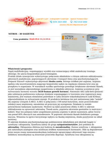 NITROX - 30 SASZETEK Właściwości preparatu: Napój