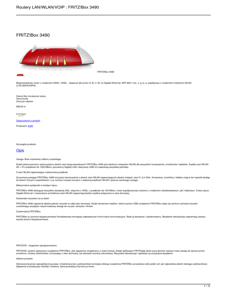 Routery LAN/WLAN/VOIP : FRITZ!Box 3490