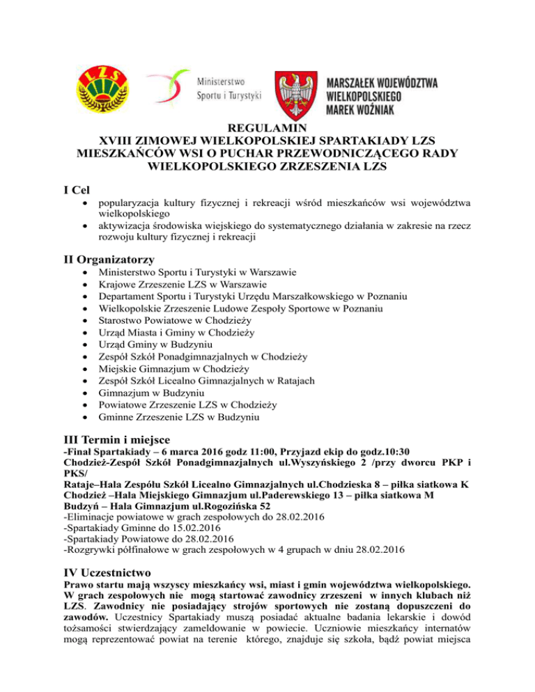 Regulamin XVIII Zimowej Wielkopolskiej Spartakiady - lzs