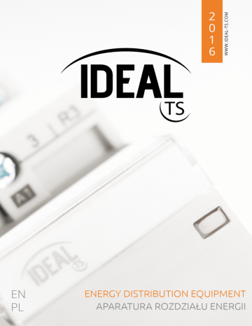 SWITCHGEARS ROZDZIELNICE 6 METAL CLAD ENCLOSURES 13 MINIATURE CIRCUIT BREAKERS 17 MODULAR SWITCH DISCONNECTORS 25 ACCESORIES FOR KMB 27 RESIDUAL CURRENT CIRCUIT BREAKERS 31 RCCB WITH OVERCURRENT PROTECTION 36 SURGE PROTECTION DEVICES 39 MODULAR LIGHT INDICATORS 43 RINGS, SOCKETS 45 MODULAR CONTACTORS 48 MODULAR TIME RELAYS 50 PROGRAMABLE TIME RELAYS, TWILIGHT SWITCHES 56 FUSE SWITCHES, HOLDERS AND LINKS 64 MOTOR PROTECTION CIRCUIT BREAKERS 70 POWER CONTACTORS 73 TERMINAL BLOCKS, BUS BARS 76 OBUDOWY WYŁĄCZNIKI NADMIAROWO-PRĄDOWE MODUŁOWE ROZŁĄCZNIKI IZOLACYJNE AKCESORIA DLA KMB WYŁĄCZNIKI RÓŻNICOWO-PRĄDOWE WYŁĄCZNIKI RCCB Z ZABEZPIECZENIEM PRĄDOWYM WARYSTOROWE OGRANICZNIKI PRZEPIĘĆ WSKAŹNIKI OBECNOŚCI NAPIĘCIA DZWONKI, GNIAZDKA STYCZNIKI MODUŁOWE MODUŁOWE PRZEKAŹNIKI CZASOWE PROGRAMOWALNE PRZEKAŹNIKI, CZUJNIKI ZMIERZCHOWE APARATY BEZPIECZNIKOWE I BEZPIECZNIKI TOPIKOWE WYŁĄCZNIKI SILNIKOWE STYCZNIKI MOCY BLOKI ZACISKOWE, SZYNY ŁĄCZENIOWE IDEAL TECHNICAL SOLUTIONS Ideal Technical Solutions is a new, professional brand that offers a wide range of innovative products in the field of electrical modular devices. Ideal Technical Solutions to nowa, profesjonalna marka, która oferuje szeroki wybór innowacyjnych produktów z zakresu elektrycznej aparatury modułowej. IDEAL TS is our response to the needs of the market. Up until now, we have offered modular device products under the Kanlux brand. However, in order to keep up with the intensive development of this market segment, we have created a new specialist brand for our Customers. IDEAL TS to nasza odpowiedź na potrzeby rynku. Dotychczas produkty z zakresu aparatury modułowej oferowaliśmy pod szyldem marki Kanlux. Jednak chcąc sprostać intensywnemu rozwojowi tego segmentu rynku specjalnie dla naszych Klientów wyodrębniliśmy nową, specjalistyczną markę. IDEAL TS specialises in modular devices, which include power, protective and control devices. Our offer also comprises of housings and distribution boards. Thanks to smart solutions and a high technical level, IDEAL TS devices ensure reliable operation for many years. W IDEAL TS specjalizujemy się w aparaturze modułowej, między innymi w: aparaturze mocy, aparaturze zabezpieczającej, aparaturze kontrolno-sterującej, w ofercie posiadamy także obudowy i rozdzielnice. Dzięki przemyślanym rozwiązaniom oraz wysokiemu poziomowi technicznemu urządzenia marki IDEAL TS gwarantują niezawodną pracę przez długie lata. We are able to meet the highest expectations of our Customers and we are becoming even more competitive on the market of modular distribution devices. Our products meet all the required standards of the market. Moreover, they have been thoroughly tested in professional laboratories and have obtained all the required certificates. We provide our Customers service and engineering support at the highest level throughout the entire life of the product, including after-sales service, technical advice and up to 5 years warranty. By selecting IDEAL TS products, our Customers are guaranteed: safety, trouble-free use and quality that meets the highest standards required on European markets. Jesteśmy w stanie sprostać najwyższym oczekiwaniom naszych Klientów i stajemy się jeszcze bardziej konkurencyjni na rynku rozdzielczej aparatury modułowej. Proponowane przez nas produkty spełniają normy obowiązujące na rynku. Co więcej zostały one gruntownie przebadane w profesjonalnych laboratoriach i otrzymały wszelkie wymagane certyfikaty. Naszym Klientom zapewniamy obsługę i wsparcie inżynierskie na najwyższym poziomie przez cały cykl życia produktu, włączając w to usługi posprzedażowe, doradztwo techniczne oraz do 5 lat gwarancji. Wybierając produkty marki IDEAL TS nasi Klienci zyskują pewność: bezpieczeństwa, bezawaryjnego użytkowania oraz jakość spełniającą najwyższe normy wymagane na rynkach europejskich. 4 DB/FMD DB/SM DB/SMD KDB 7 8 9 11 KDB-MP KDB-MF/MW/MS KMB6-B/1 KMB6-B/3 14 15 18 19 KMB6-C/1 KMB6-C/3 KMI KMA-MN 20 21 26 28 KMA-AL KMA-MX KMA-OF KSGP-1 28 29 29 30 KSG-PL KRD6-2 KRD6-4 KRO 30 32 33 37 KSD T2(C) KSD T1+T2 KLI KDOB 40 41 44 46 KTF KMFS KMC KTR 46 47 49 51 JVT2 AS JVT3 KDEM 57 58 59 60 AZ KSF / KFB KFB-18 KFB-E27/E33 61 65 66 67 KMP KCP KBBU / KBBI KTB 71 74 77 78 5 SWITCHGEARS ROZDZIELNICE Technical data / Dane techniczne Standard / Norma EN61439-3 Modules / Liczba modułów up to 3 rows, 36 modules / do 3 rzędów - 36 modułów Rated Current In / Prąd znamionowy In 63A Color / Kolor white / brown biały / brązowy transparent, grey przezroczyste, szary Color of door / Kolor drzwi surface, flush podtynkowy, natynkowy Mounting type / Typ montażu Degree of protection / Stopień ochrony IP DB - IP40 / KDB - IP30 Class of isolation / Klasa izolacji II Material / Tworzywo ABS / PC Fire resistance / Odporność temperaturowa 650 / 850°C Index / Indeks DB/FMD DB/SM DB/SMD DB KDB KDB 7 8 9 10 11 12 DB/FMD Switchgear with DIN rail Rozdzielnica podtynkowa z szyną DIN DB112F 1X12P/FMD DB312F 3X12P/FMD DB108F 1X8P/FMD DB106F 1X6P/FMD DB212F 2X12P/FMD DB104F 1X4P/FMD DB118F 1X18P/FMD SYMBOL INDEX / INDEKS SLOTS / MIEJSCA PACKAGING / PAKOWANIE DB104F 1X4P/FMD 03840 4P 1/-/20 DB106F 1X6P/FMD 03841 6P 1/-/20 DB108F 1X8P/FMD 03842 8P 1/-/20 DB112F 1X12P/FMD 03843 12P 1/-/10 DB118F 1X18P/FMD 03844 18P 1/-/10 DB212F 2X12P/FMD 03845 2 x 12P 1/-/10 DB312F 3X12P/FMD 03846 3 x 12P 1/-/5 EN PL Casing, door: ABS plastic / colour: white/brown Each row with door Door opening upwards Maximum allowable housing temperature: 70°C housing heat resistance 850°C, for electric equipment 650°C/30s IK06 IP40 Obudowa, drzwiczki: tworzywo ABS / kolor: biały/brązowy Każdy rząd z drzwiczkami Drzwiczki uchylane ku górze Maksymalna dopuszczalna temperatura obudowy: 70°C wytrzymałość na żar dla obudowy wynosząca 850°C, dla wyposażenia elektrycznego wynosząca 650°C/30s IK06 IP40 EN PL Z-DB plug for switchgear of DB series, us