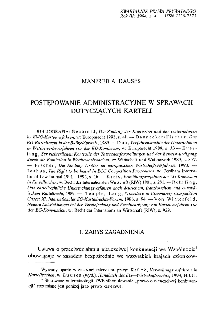 - Fis c her, Die Stellung Dritter im europäischen Wirtschaftsverfahren, 1990. los h u a , The Right to be heard in ECC Competition Procedures, w: Fordham International Law lournal 1991-1992, s. 16. - Kr eis, Ermittlungsverfahren der EG-Komission