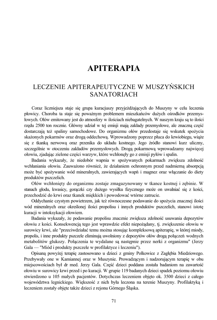LECZENIE APITERAPEUTYCZNE W MUSZYŃSKICH