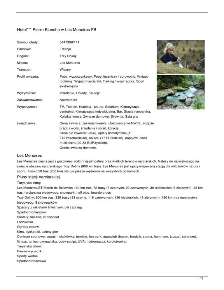 Hotel*** Pierre Blanche w Les Menuires FB