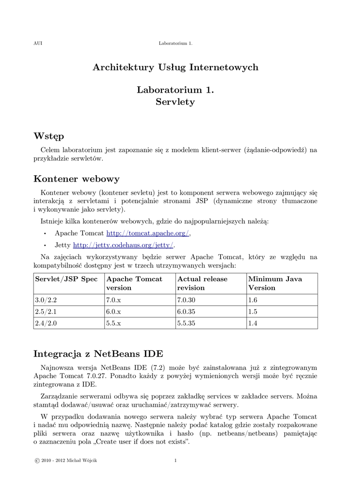 Na zajęciach wykorzystywany będzie serwer Apache Tomcat, który ze względu na