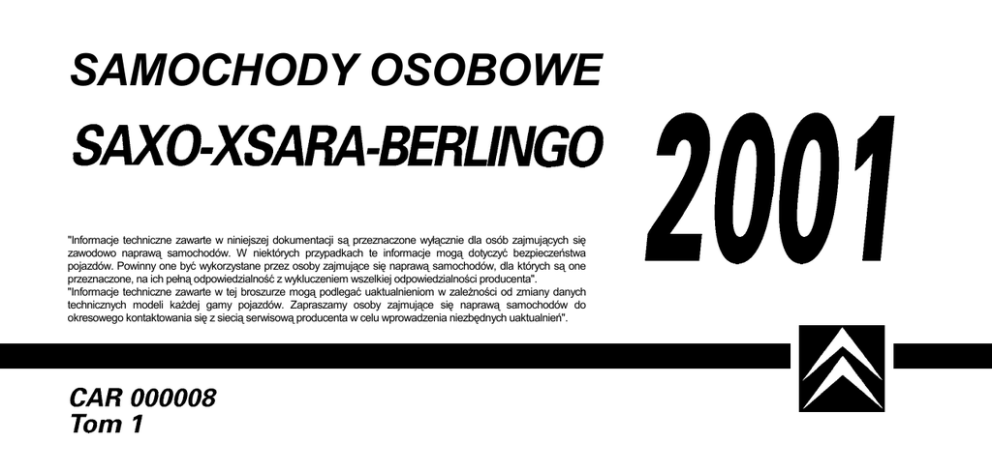 W każdym rozdziale samochody omawiane są w następującej kolejności: SAXO - XSARA - XSARA PICASSO - BERLINGO ze wszystkimi możliwymi