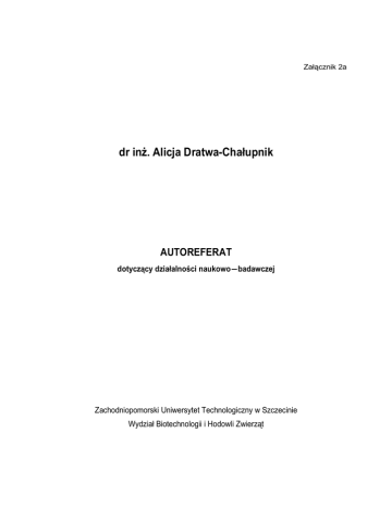 dr inŜ. Alicja Dratwa-Chałupnik AUTOREFERAT