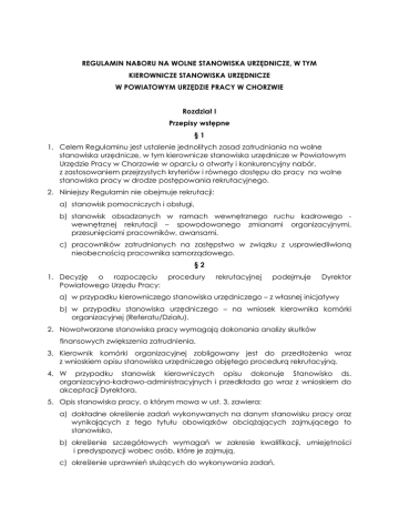 Regulamin naboru na wolne stanowiska urzędnicze