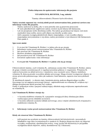 Informacje ważne przed zastosowaniem leku Vitaminum B1 Richter