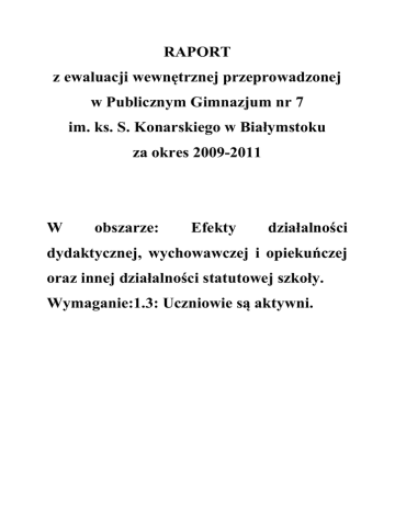 Raport z ewaluacji wewnętrznej za okres 2009-2011