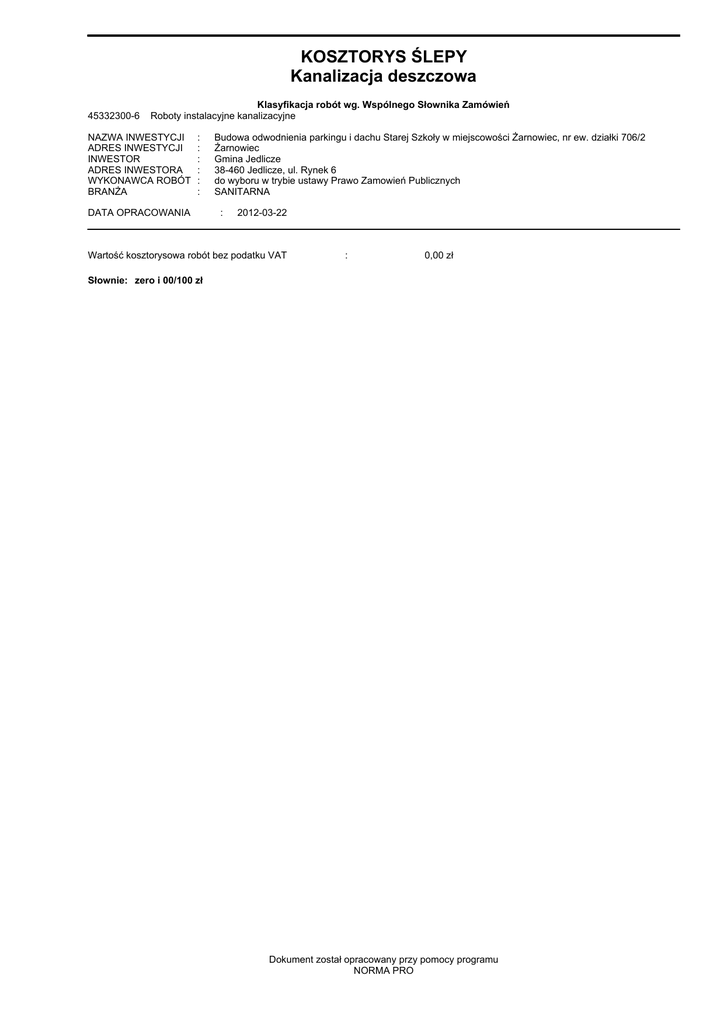 KOSZTORYS ŚLEPY Kanalizacja deszczowa