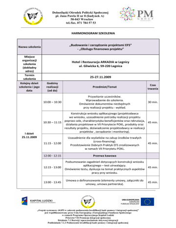 HARMONOGRAM SZKOLENIA - Dolnośląski Ośrodek Polityki