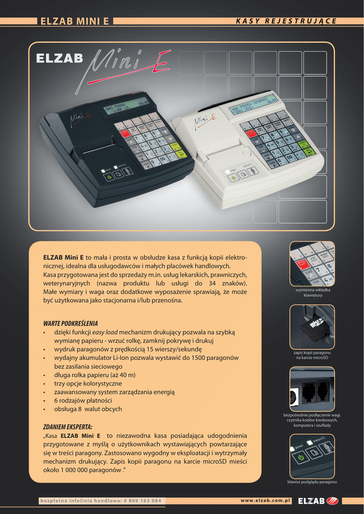 Karta katalogowa kasy fiskalnej ELZAB Mini E - kasy