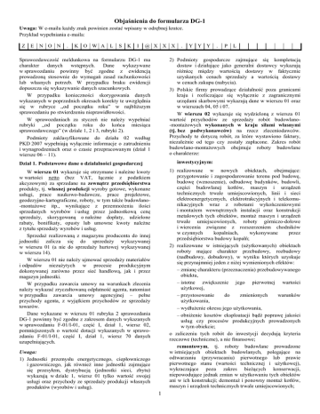 Objaśnienia do wypełnienia formularza DG-1