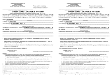 ORZECZENIE LEKARSKIE nr 1/2017 ORZECZENIE