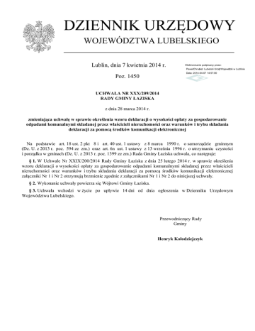 i porządku w gminach (Dz. U. z 2013 r. poz. 1399 ze zm.) Rada Gminy Łaziska uchwala, co następuje: