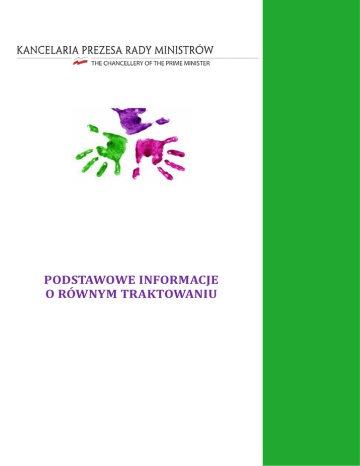 PODSTAWOWE INFORMACJE O RÓWNYM TRAKTOWANIU Podstawowe informacje o równym traktowaniu 1. Definicje Równe traktowanie – oznacza traktowanie wolne od wszelkich rodzajów dyskryminacji, z przyczyn takich jak między innymi płeć, wiek, pochodzenie etniczne i narodowe, „rasę”, religię i przekonania oraz niepełnosprawność i orientację seksualną. Dyskryminacja - to zachowanie lub zaniechanie jakichś działań, najczęściej wynikające z uprzedzeń i negatywnych stereotypów. Efektem dyskryminacji często jest wykluczenie społeczne danej osoby lub grupy osób, odmienne traktowanie różnych podmiotów, które znajdują się w podobnej sytuacji. Podobieństwo sytuacji ocenia się w oparciu o obiektywne i weryfikowalne okoliczności istotne. Wyodrębnienie takich okoliczności zależy zawsze od kontekstu danej sprawy. Przepisy prawa zakazujące dyskryminacji ze względu na płeć, wyznanie, przynależność państwową etc. ustalają katalog cech, które, co do zasady, nie mogą być uznawane za okoliczności istotne. Dyskryminacja bezpośrednia – sytuacja, w której osoba fizyczna ze względu na płeć, rasę, pochodzenie etniczne, narodowość, religię, wyznanie, światopogląd, niepełnosprawność, wiek lub orientację seksualną jest traktowana mniej korzystnie niż jest, była lub byłaby traktowana inna osoba w porównywalnej sytuacji. Dyskryminacja pośrednia – stanowi formę dyskryminacji występującą w sytuacji, w której dla osoby fizycznej ze względu na płeć, rasę, pochodzenie etniczne, narodowość, religię, wyznanie, światopogląd, niepełnosprawność, wiek lub orientację seksualną na skutek pozornie neutralnego postanowienia, zastosowanego kryterium lub podjętego działania występują lub mogłyby wystąpić niekorzystne dysproporcje lub szczególnie niekorzystna dla niej sytuacja, chyba że postanowienie, kryterium lub działanie jest obiektywnie uzasadnione ze względu na zgodny z prawem cel, który ma być osiągnięty, a środki służące osiągnięciu tego celu są właściwe i konieczne. 1 Dyskryminacja przez asocjację – stosowanie praktyk dyskryminacyjnych wobec osoby, która nie należy do grupy chronionej przesłankami prawnie chronionymi, tj. płcią, wiekiem, pochodzeniem rasowym lub etnicznym, religią, przekonaniami, niepełnosprawnością lub orientacją seksualną, lecz jest uważana za powiązaną z tą grupą/ osobami należącymi do tej grupy lub z nią kojarzona. Dyskryminacja przez asumpcję – stosowanie praktyk dyskryminacyjnych wobec osoby, która nie należy do grupy chronionej przesłankami prawnie chronionymi, tj. płcią, wiekiem, pochodzeniem rasowym lub etnicznym, religią, przekonaniami, niepełnosprawnością lub orientacją seksualną, lecz jest mylnie uważana za przynależącą do niej. Dyskryminacja wielokrotna – jest to dyskryminacja doświadczana przez jednostki w związku z ich przynależnością do wielu grup chronionych przesłankami prawnie chronionymi (np. dyskryminacja doświadczana przez kobietę w starszym wieku; mężczyznę żyjącego z niepełnosprawnością, będącego muzułmaninem czy homoseksualną kobietę). Mobbing – działania lub zachowania dotyczące pracownika lub skierowane przeciwko pracownikowi, polegające na uporczywym i długotrwałym nękaniu lub zastraszaniu pracownika, wywołujące u niego zaniżoną ocenę przydatności zawodowej, powodujące lub mające na celu poniżenie lub ośmieszenie pracownika, izolowanie go lub wyeliminowanie z zespołu współpracowników. Zjawisko mobbingu zostało zdefiniowane w art. 943 § 2 Kodeksu pracy. Mobbing nie jest formą dyskryminacji. Molestowanie – każde niepożądane zachowanie, którego celem lub skutkiem jest naruszenie godności osoby fizycznej i stworzenie wobec niej zastraszającej, wrogiej, poniżającej, upokarzającej lub uwłaczającej atmosfery. Molestowanie w świetle polskiego prawa jest uznawane za jedną z form dyskryminacji. Molestowanie seksualne – każde niepożądane zachowanie o charakterze seksualnym wobec osoby fizycznej lub odnoszące się do płci, którego celem lub skutkiem jest naruszenie godności tej osoby, w szczególności przez stworzenie wobec niej zastraszającej, wrogiej, poniżającej, upokarzającej lub uwłaczającej atmosfery; na zachowanie to mogą się składać fizyczne, werbalne lub pozawerbalne elementy. Molestowanie w świetle polskiego prawa jest uznawane za jedną z form dyskryminacji ze względu na płeć. 2 3 2. Organy odpowiedzialne za przestrzeganie zasady równego traktowania 2.1 Pełnomocnik Rządu do Spraw Równego Traktowania Pełnomocnik Rządu do Spraw Równego Traktowania działa na podstawie ustawy z dnia 3 grudnia 2010 r. o wdrożeniu niektórych przepisów Unii Europejskiej w zakresie równego traktowania (Dz. U. z 2010 r. Nr 254, poz. 1700, z późn. zm. dalej: ustawa) Pełnomocnik jest powoływany i odwoływany przez Prezesa Rady Ministrów i realizuje politykę rządu w zakresie równego traktowania. Do zadań Pełnomocnika Rządu do Spraw Równego Traktowania należy m.in. opracowywanie i opiniowanie projektów aktów prawnych w zakresie zasady równego traktowania; przeprowadzanie analiz i ocen rozwiązań prawnych pod kątem respektowania zasady równego traktowania, a także występowanie do właściwych organów z wnioskami o wydanie lub zmianę aktów prawnych w zakresie spraw należących do Pełnomocnika; podejmowanie działań zmierzających do eliminacji lub ograniczenia skutków powstałych w wyniku naruszenia zasady równego traktowania; dokonywanie analiz i ocen sytuacji prawnej i społecznej w zakresie równego traktowania oraz inicjowanie, realizowanie, koordynowanie lub monitorowanie działań zmierzających do zapewnienia równego traktowania, a także do ochrony przed dyskryminacją; monitorowanie sytuacji w zakresie przestrzegania zasady równego traktowania; promowanie, upowszechnianie i propagowanie problematyki równego traktowania; współ
