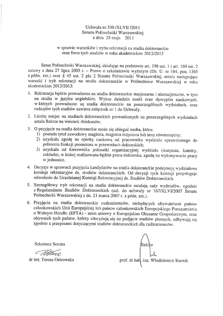 załącznik do uchwały Senatu nr 330/XLVII/2011 Wykaz dziedzin nauki oraz dyscyplin naukowych, w których prowadzone są studia doktoranckie w Politechnice Warszawskiej, oraz rodzajów studiów, na które będą prowadzone przyjęcia w roku akademickim 2012/2013 Podstawowa jednostka organizacyjna dziedzina nauki, dyscyplina naukowa Wydział Administracji i Nauk Społecznych Wydział Architektury Wydział Budownictwa, Mechaniki i Petrochemii Wydział Chemiczny Wydział Elektroniki i Technik Informacyjnych Wydział Elektryczny Wydział Fizyki Wydział Geodezji i Kartografii Wydział Inżynierii Chemicznej i Procesowej Wydział Inżynierii Lądowej Wydział Inżynierii Materiałowej Wydział Inżynierii Produkcji Wydział Inżynierii Środowiska Wydział Matematyki i Nauk Informacyjnych nauki techniczne – Architektura i Urbanistyka nauki techniczne – Budowa i Eksploatacja Maszyn – Budownictwo nauki chemiczne – Chemia – Technologia Chemiczna nauki techniczne – Technologia Chemiczna nauki techniczne – Automatyka i Robotyka – Elektronika – Informatyka – Telekomunikacja nauki techniczne – Automatyka i Robotyka – Elektrotechnika nauki fizyczne – Fizyka nauki techniczne – Geodezja i Kartografia nauki techniczne – Inżynieria Chemiczna nauki techniczne – Budownictwo nauki techniczne – Inżynieria Materiałowa nauki techniczne – Budowa i Eksploatacja Maszyn – Mechanika studia stacjonarne studia niestacjonarne w jęz. w jęz. pol. ang. – – – + + + + + – – – – + + – – – – + – – + + + + – – – – + + + + + + – + – + + – + + +(1) +(1) + – – + – +(1) + – – + + + + + – nauki techniczne – Inżynieria Środowiska + + nauki techniczne – Matematyka + – nauki techniczne – Automatyka i Robotyka + + Wydział Mechaniczny – Budowa i Eksploatacja Maszyn + + Energetyki i Lotnictwa – Energetyka + + – Mechanika + + nauki techniczne – Automatyka i Robotyka + + Wydział Mechatroniki – Biocybernetyka i Inżynieria Biomedyczna + + – Budowa i Eksploatacja Maszyn + + nauki techniczne Wydział Samochodów – Budowa i Eksploatacja Maszyn + + i Maszyn Roboczych – Mechanika + + nauki techniczne Wydział Transportu – Transport + – nauki ekonomiczne (2) Wydział Zarządzania – Nauki o Zarządzaniu +(1) +(1) (1) o ile studia zostaną utworzone (2) Środowiskowe Studia Doktoranckie Wydziału Zarządzania Uniwersytetu Warszawskiego i Wydziału Zarządzania Politechniki Warszawskiej + – + + + + +(1) +(1) +(1) + + – +(1)