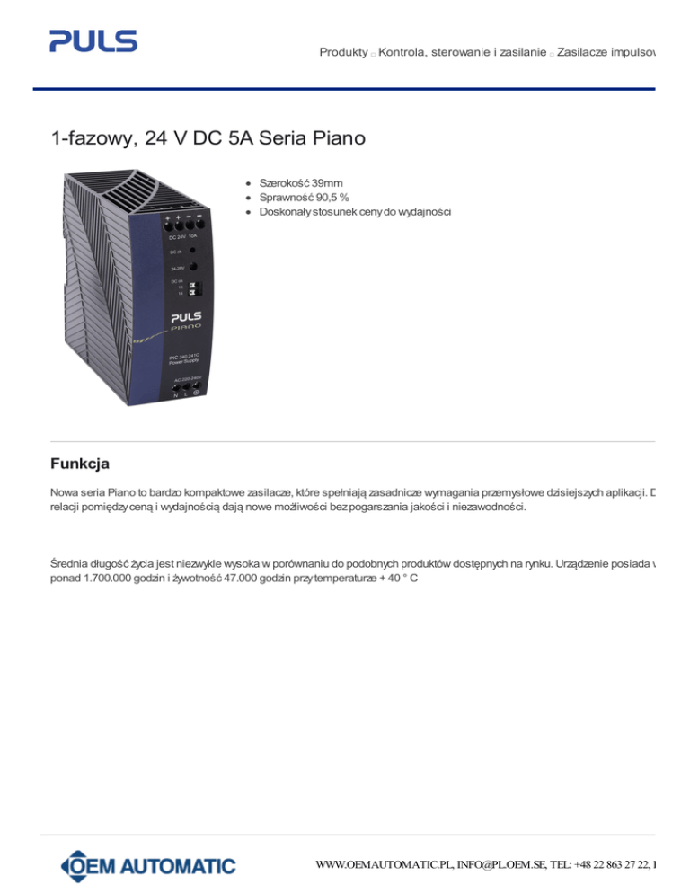 1-fazowy, 24 V DC 5A Seria Piano