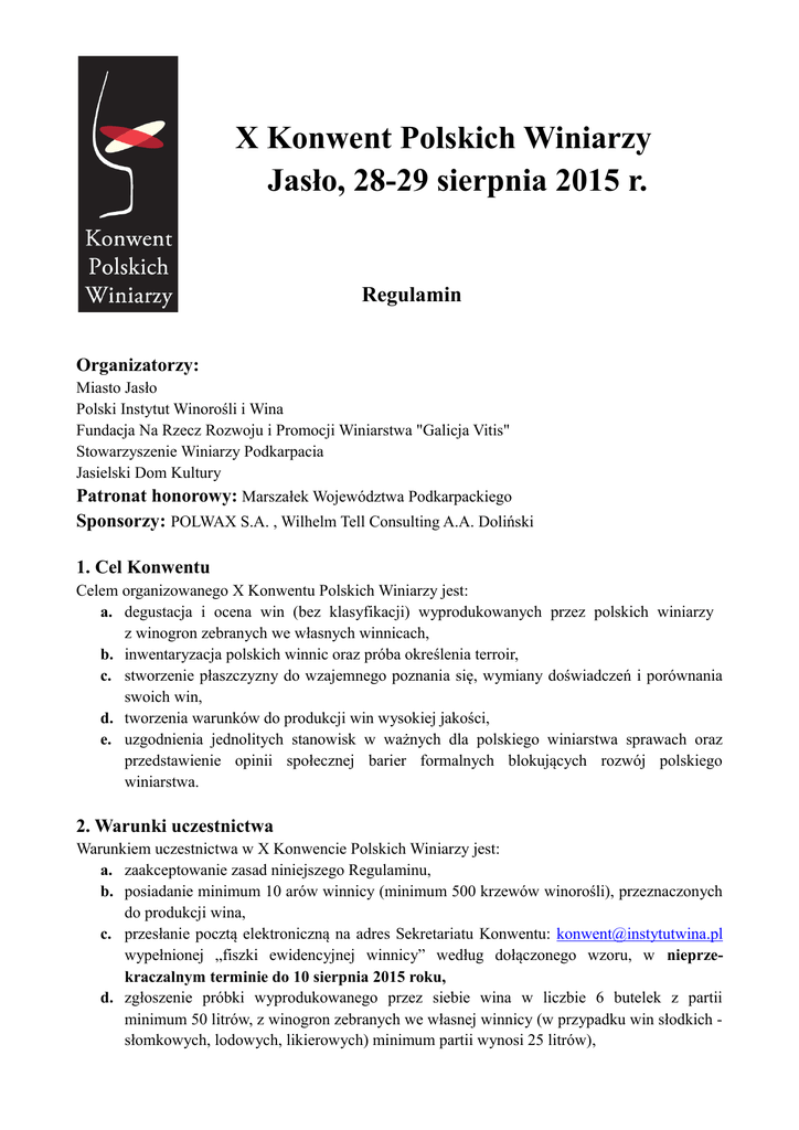 X Konwent Polskich Winiarzy Jasło, 28-29 sierpnia 2015 r.