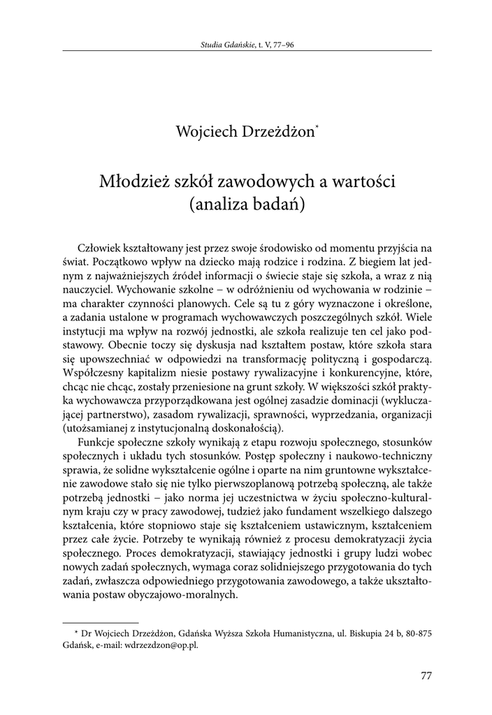Młodzież szkół zawodowych a wartości (analiza badań)