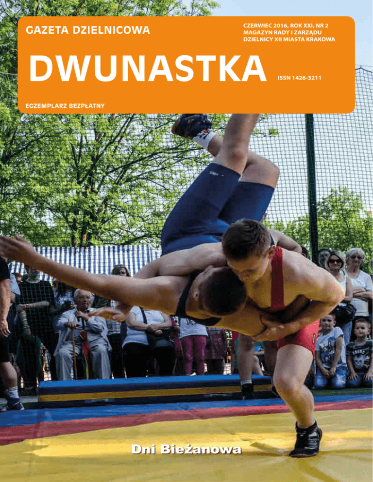 CZERWIEC 2016, ROK XXI, NR 2 MAGAZYN RADY I ZARZĄDU DZIELNICY XII MIASTA KRAKOWA ISSN 1426-3211 Dni Bieżanowa 1 Miejsca gdzie znajdziesz naszą „Dwunastkę” WYDAWCA: Dzielnica XII Bieżanów-Prokocim REDAGUJE ZESPÓŁ: TOMASZ GUZIK - Redaktor Naczelny MIECZYSŁAW LASOTA RAFAŁ BUCHELT BARBARA LEŚNIAK ELŻBIETA MATYKIEWICZ PIOTR FĄFARA GRAŻYNA FIJAŁKOWSKA JOANNA GRZESZCZUK - korektor ADRES REDAKCJI: ul. Kurczaba 3, 30-868 Kraków tel/fax 012 658 26 11 e-mail: [email protected] SKŁAD, ŁAMANIE, DRUK: Drukarnia Kolejowa Kraków Redakcja zastrzega sobie prawo do skracania i korekty artykułów oraz opatrzenia ich własnymi tytułami. Artykułów nie zamówionych redakcja nie zwraca. Za treść artykułów i prawa autorskie wykorzystanych zdjęć odpowiadają autorzy tekstów. Wydawca nie ponosi odpowiedzialności za treść reklam. Rada Dzielnicy XII Bieżanów-Prokocim ul. Kurczaba 3 tel./fax: 12 658 26 11 e-mail: [email protected] www.dzielnica12.krakow.pl Sekretariat przyjmuje: Poniedziałek 1200–1500 Wtorek 1400–1700 Środa 1200–1500 Czwartek 1200–1500 Piątek 1200–1500 DYŻURY CZŁONKÓW ZARZĄDU DZIELNICY XII BIEŻANÓW - PROKOCIM ZBIGNIEW KOŻUCH - Przewodniczący Rady i Zarządu Dzielnicy XII piątek od 10:00 - 12:00 MARKOWICZ WIESŁAW - Zastępca Przewodniczącego Zarządu - środa od 16:30 -18:00 KINGA WITKOWSKA - członek Zarządu poniedziałek od 10:00 -11:00 RAFAŁ BUCHELT - członek Zarządu wtorek od 17:00 - 18:30 LASOTA MIECZYSŁAW - członek Zarządu czwartek od godz. 17:00 - 18:00 Dyżury Radnych Miasta Krakowa GRAŻYNA FIJAŁKOWSKA - Radna Miasta Krakowa piątek od godz. 10:00 - 11:00 2 Nowy Prokocim: Sklep Rarytas ul. Ściegiennego Przychodnia ul. Teligi 8 SM Nowy Prokocim ul. Kurczaba 25 Kościół pw. Miłosierdzia Bożego Punkt Totolotka Plac Targowy Boisko Orlik ul. Jerzmanowskiego 4 Firma MJM ul. Teligi 34D Basen ul. Kurczaba 29 KRD Dyliniarnia ul. Wallenroda 55/56 Sklep spożywczy ul. Republiki Korczakowskiej 11 Prokocim i Kozłówek: Sklep Lewiatan na Rynku Prokocimiskim SM Na Kozłówce ul. Spółdzielców Kaplica OO. Augustianów Bibliotek ul. Spółdzielców Przychodnia ul. Na Kozłówce Salon Fryzjerski ul. Republiki Korczakowskiej Wypożyczalnia DVD Tip Top Stowarzyszenie Siemacha ul. Na Kozłówce Bieżanów: Stowarzyszenie Rodzin Katolickich EDEN Przychodnia ul. Popiełuszki Sklep ul. Pruszyńskiego Sklep ul. Złocieniowa Dwór Czeczów Auto Robot System ul. Mała Góra 56 Sklep Planeta ul. Łaczka Sklep przy Skwerze 800 lecia Bieżanowa Sklep Jawor Zakład fryzjerski ul. Stacyjna Nowy Bieżanów: Kościół pw. Najświętszej Rodziny Kiosk na deptaku ul. Aleksandry Dom Kultury SM Nowy Bieżanów Przychodnia ul. Heleny Kiosk przy deptaku (obok marketu Biedronka) Kiosk ul. Mała Góra 16 Kiosk ul. Aleksandry 23 Samorządowe Przedszkole nr 176 Złocień: SM Śnieżka Przychodnia Sklepy osiedlowe Rżąka: Mini market Oleńka Sklep Kak Zakład fryzjerski Anna Kościół pw. Najświętszej Maryji Panny Zespół Szkół nr 15 Sklep Zielony Smok Sklep ABC Avita ul. Schweitzera 13 Jadłodajnia DoMati ul. Rydygiera 31 Dyżury przedstawicieli Straży Miejskiej będą w każdą pierwszą środę miesiąca od 17.00 do 18.00 w siedzibie Rady Dzielnicy XII. Spis treści Wydarzyło się . . . . . . . . . . . . . . . . . . . . . . . . . . . . . . . 2-8 Wystawa interaktywna . . . . . . . . . . . . . . . . . . . . . . . 8-9 Nocne sklepy alkocholowe . . . . . . . . . . . . . . . . . . . . . 9 Aukcja obrazów . . . . . . . . . . . . . . . . . . . . . . . . . . . . . . . 9 Sprawozdanie za 2015 rok . . . . . . . . . . . . . . . . 10-11 Wiadomości dla mieszkańców. . . . . . . . . . . . . . . . 12 Słowo Redaktora Naczelnego W tym numerze, drugim w tym roku, chcemy sprawozdawczo przedstawić Państwu Dni Bieżanowa oraz zaprosić na Dni Prokocimia. Ważnym tematem, podjętym w tym numerze jest Budżet Obywatelski. W tym roku odbywa się już kolejna edycja zarówno ogólnomiejskiego jak i dzielnicowego budżetu obywatelskiego. Lista projektów, niej na drugą stronę. Naszej gazecie został przyktórą prezentujemy, to na razie wszystkie po- znany również numer ISSN. mysły przedstawione przez mieszkańców. TradyZ wyrazami szacunku cyjnie zachęcamy Państwa do pisania do naszej Tomasz Guzik gazetki. Pozwoliliśmy sobie również na niewielką Redaktor Naczelny Dwunastki zmianę rozkładu, przerzucając rubrykę z ostat- Wydarzyło się... „Z matematyką za pan brat już od najmłodszych lat” - ósma edycja konkursu matematycznego dla przedszkolaków 18 maja bieżącego roku w Samorządowym Przedszkolu nr 35 z Oddziałami Integracyjnymi im. A. Dymnej w Krakowie, odbyła się ósma edycja konkursu matematycznego dla dzieci 5,6 –letnich „Z matematyką za pan brat już od najmłodszych lat”. W tegorocznej edycji wzięło udział 7- trzyosobowych zespołów dzieci reprezentujących krakowskie przedszkola. Nadrzędnym celem konkursu było stworzenie dzieciom możliwości do zaprezentowania zdolności matematycznych i umiejętności logicznego my- ślenia oraz pokazanie im, że znajomość matematyki pomaga w różnorodnych sytuacjach życiowych. Podczas konkursu dzieci miały do rozwiązania 9 zadań sformułowanych w postaci zróżnicowanych gier i zabaw matematycznych. Dzieci z wielkim zapałem i uśmiechem na twarzach podejmowały się rozwiązywania postawionych przed nimi zadań. Całej zabawie towarzyszył wspólny okrzyk „Czy wygramy, czy przegramy to i tak riki tiki tak”. Mali matematycy mimo napotkanych trudności świetnie się bawili, rozwiązywaniu zadań towarzyszyła miła atmosfera i wiele emocji. Poziom rywalizacji był bardzo wyrównany o czym świadczą poniższe wyniki. Zwycięzcami konkursu zostali: Miejsce I Przedszkole nr 127 i 28, Miejsce II Przedszkole nr 176 i 49, Miejsce III Przedszkole nr 180,49 i 35. Wszystkie dzieci biorące udział w konkursie otrzymały dyplomy i drobne upominki ufundowane m. in. przez Radę Dzielni