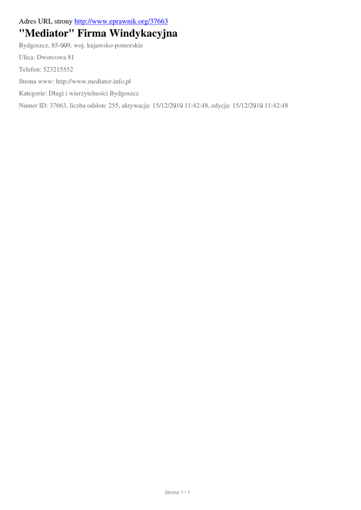 "Mediator" Firma Windykacyjna, Bydgoszcz