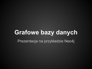 Grafowe bazy danych Prezentacja na przykładzie Neo4j Co to jest grafowa baza danych? Co to jest grafowa baza danych? Co to jest grafowa baza danych? Leonard Euler Zagadnienie mostów królewieckiech (1736) Co to jest grafowa baza danych? Graf skierowany z atrybutami ● graf składa się z węzłów i krawędzi ● krawędzie są nazwane i skierowane ● zarówno węzły jak i krawędzie mogą mieć przypisane atrybuty Co to jest grafowa baza danych? Co to jest grafowa baza danych? ● ACID - wszystkie operacje na strukturze bazy są wykonywane w ramach atomowych transakcji ● możliwość obsługi dużej ilości danych dziesiątki miliardów węzłów oraz krawędzi ● wydajność - prędkość podążania po grafie jest stała, niezależna od ilości danych w bazie ● skalowalność - możliwość konfiguracji w klastrze w trybie master-slave ● deklaratywny język zapytań Cypher Kiedy baza grafowa ma przewagę nad relacyjną? ● duża złożoność powiązań relacyjnych ● potrzeba podążania w głąb po relacjach ● często zmieniający się model danych “Baza relacyjna pomaga odpowiedzieć na pytanie jaki jest średni wiek ludzi w pubie. Baza grafowa pomaga określić, który bywalec najprawdpodobniej postawiłby tobie piwo.” Modelowanie w bazie relacyjnej a w bazie grafowej Modelowanie w bazie relacyjnej a w bazie grafowej Baza relacyjna ● diagram relacji np. na tablicy ● przełożenie na diagram ER ● przełożenie na strukturę tabel z kluczami i tabelami pomocniczymi (relacje m-n) ● normalizacja ● optymalizacja (utworzenie indeksów pod kątem określonych zapytań) Modelowanie w bazie relacyjnej a w bazie grafowej Baza grafowa ● diagram relacji na tablicy ● implementacja diagramu w bazie ● KONIEC Odpytywanie bazy grafowej Neo4j Cypher Query Language MATCH p:Person-[:FRIEND_OF]->()<-[:FRIEND_OF]-p2 WHERE p.name = “Mike” RETURN p2.name; ● deklaratywny język zapytań, składniowo przypominający SQL ● są dostępne inne metody odpytywania grafu, ale ta jest bardzo ekspresywna i jednocześnie wygodna w użyciu ● wzorce dopasowania graficznie przypominające węzły i strzałki krawędzi Najczęstsze zastosowania grafowych baz danych ● sieci społecznościowe ● mechanizmy rekomendacji ● zagadnienia wyszukiwania optymalnej trasy (głównie w domenie geo-spatial) Najczęstsze zastosowania grafowych baz danych ● sieci społecznościowe ● mechanizmy rekomendacji ● zagadnienia wyszukiwania optymalnej trasy (głównie w domenie geo-spatial) Mniej oczywiste: ● autoryzacja i kontrola dostępu ● systemy zarządzania treścią