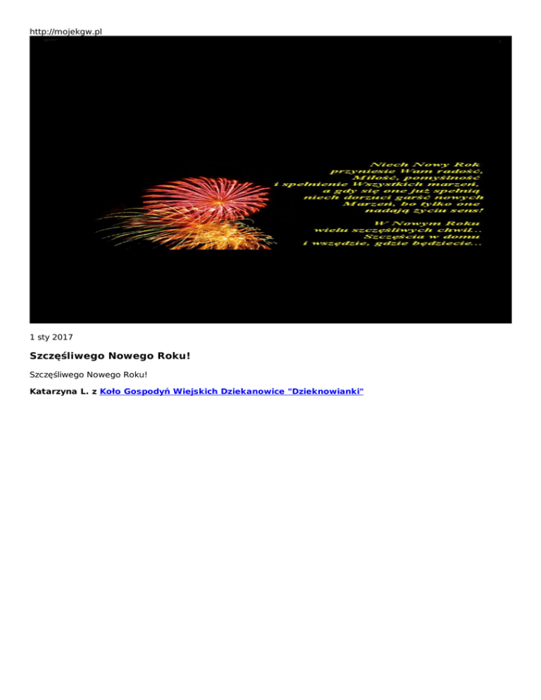 http://mojekgw.pl 1 sty 2017 Szczęśliwego Nowego Roku! Szczęśliwego Nowego Roku! Katarzyna L. z Koło Gospodyń Wiejskich Dziekanowice "Dzieknowianki"