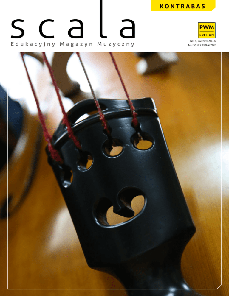 KONTRABAS Edukacyjny Magazyn Muzyczny Nr 7, kwiecień 2016 Nr ISSN 2299-6702 O d S r e d a k c j i p i s t r e ś c i skrzypiec basowych 3doOd kontrabasu D Katarzyna Marczak W dobrym stylu 5 Krzysztof Firlus rodzy Państwo, Kontrabas. Wielki instrument dla dużych ludzi? Nieporęczny, ograniczony i nudny? Niezbyt rozgarnięty aktor drugiego i trzeciego planu? Przeciwnie! W rękach wirtuoza kontrabas może zamienić się w jedno z najbardziej finezyjnych narzędzi do uprawiania muzyki. Posiada ogromne możliwości brzmieniowe i bogatą paletę dźwiękowych barw. Może zachwycić głębią basowego rejestru, ukoić subtelną średnicą skali i zaskoczyć perlistą strukturą dźwięków wysokich. Wiele technik wykonawczych i środków artykulacyjnych pozwala prowadzić słuchacza przez meandry rozmaitych stylów i gatunków. Kontrabas odnajduje się przecież świetnie w twórczości klasycznej, od dawnej po współczesną, ale też znakomicie sprawdza się w jazzie i rozrywce. Słowem – kontrabas to instrument doskonały. Oddając w Państwa ręce kolejny numer czasopisma „Scala”, pragniemy to udowodnić. Śledzimy historię kontrabasu, jego genezę, rozwój i różne stylistyczne wcielenia. Pokazujemy, jak powstaje instrument i rozmawiamy z wybitnymi wirtuozami kontrabasu. Wreszcie wskazujemy wartościowy repertuar i przedstawiamy rewolucyjną na rynku międzynarodowym Szkołę na kontrabas – mini, midi, maxi, którą dla młodych adeptów gry na tym instrumencie przygotował znakomity artysta i pedagog, Grzegorz Frankowski. Zapraszam do lektury! dr Daniel Cichy Redaktor Naczelny PWM Aspekty polskiej pedagogiki 8kontrabasowej Jan Kotula 11 Kontrabas dla małych i dużych Grzegorz Frankowski 14Instrumenty z duszą – wywiad z Marianem Pawlikiem Bibianna Ciejka 16 Rola kontrabasu w muzyce jazzowej i rozrywkowej Jacek Niedziela-Meira 19 Gra na kontrabasie solo jest jak sport wyczynowy – wywiad z Jurkiem Dybałem Karolina Kolinek-Siechowicz 22 Okiem pedagoga. Garść recenzji Ryszard Kusek, Grzegorz Frankowski, Jan Kotula, Adam Kotula 25 Czas na bas Irena Olkiewicz Bach nie żyje. Chopin umarł. I ja też się jakoś słabo czuję... Adresy naszych stron internetowych: http://pwm.com.pl http://edu.pwm.com.pl http://www.facebook.com/PWMEdition Polskie Wydawnictwo Muzyczne al. Krasińskiego 11a 31-111 Kraków tel.: (+48) 12 422 70 44 www.pwm.com.pl [email protected] Rys. K. Zalewska Redakcja merytoryczna Bibianna Ciejka Koncepcja merytoryczna Sylwia Religa Redakcja Paulina Kabalak Layout Pracownia Register 2 Dział Promocji tel.: (+48) 12 422 70 44 wew. 151 [email protected] Dział Zbiorów Nutowych ul. Fredry 8 00-097 Warszawa tel.: (+48) 22 635 35 50 [email protected] Dział Handlu i Marketingu tel./fax: (+48) 12 422 71 71 [email protected] Dział Zarządzania Prawami tel.: (+48) 12 422 74 28 [email protected] Fot. na okładce Eva Hajduk / Haust-Foto R e t r o s p e k c j e Od skrzypiec basowych do kontrabasu Studiując historię każdego instrumentu, w pewnym momencie docieramy zwykle do zatartych mgłą czasu początków, gdzie jak nici plączą się źródła powstania współczesnych instrumentów. Kontrabas jest na to świetnym dowodem. Christian Eduard Böttcher, Lekcja muzyki, 1860 r. Fot. Odon Wagner Gallery Katarzyna Marczak Teoretyk muzyki i klarnecistka, doktorat z klarnetu uzyskała na University of British Columbia w Kanadzie. Klarnecistka Trio sTREga i Ara Ensemble, autorka artykułów i publikacji muzycznych. Wydawałoby się, że rzecz nie powinna być skomplikowana: na pierwszy rzut oka kontrabas wygląda przecież jak „ogromne skrzypce”, prawdopodobnie więc powstał na zasadzie powiększenia tego najpopularniejszego instrumentu smyczkowego. Do dzisiaj jednak badacze nie są do końca zgodni co do rodowodu kontrabasu: czy wywodzi się on z rodziny viol da gamba („nakolannych”) czy viol da braccio („naramiennych”)? Na początek zatem należy zdać sobie sprawę z różnic konstrukcyjnych między tymi dwoma typami instrumentów. Viola da gamba miała pięć lub sześć strun strojonych w kwartach, progi jelitowe na podstrunnicy, płaski spód pudła rezonansowego, spadziste „ramiona” i wysokie boczki. Smyczek violi da gamba trzymany był od spodu, dłonią odwróconą wierzchem w dół. Viola da braccio natomiast charakteryzowała się zaokrąglonym kształtem górnej części pudła rezonansowego oraz spodu, i miała od trzech do czterech strun strojonych w kwintach. Grając na violach da braccio smyczek trzymano zaś tak jak obecnie stosuje się w grze na skrzypcach (dłoń wierzchem do góry). Viola da gamba właściwie wyszła z użycia i wykorzystywana jest dzisiaj głównie w tak zwanym wykonawstwie historycznym, natomiast viole da braccio dały początek dzisiejszym skrzypcom, altówce i wiolonczeli. Kontrabas, w przeciwieństwie do tych instrumentów, do dziś nie ma ustalonych wymiarów oraz jednego obowiązującego kształtu, może natomiast posiadać cechy obu typów dawnych viol. Pierwsze sygnały z Niemiec i Włoch Niezależnie jednak od późniejszych rozgałęzień, poszukując pierwszych śladów basowego instrumentu smyczkowego sięgnąć należy właściwie do końca wieku XV. Najwcześniejsza wzmianka pochodzi z 1493 roku i są to słowa Bernardina Prospera z Ferrary o „violi wielkiej jak on sam”. Nie ma jednak dokładnych opisów podobnych instrumentów i dopiero Michael Praetorius, niemiecki muzykolog z XVII wieku, w swoim monumentalnym dziele Syntagma musicum w tomie drugim (De organographia) szczegółowo przedstawia instrument, który nazywa grosse bassgeige („wielkie skrzypce basowe”). Był on prawdopodobnie znany w innych częściach Europy jako violone; miał wielkość pośrednią między wiolonczelą a kontrabasem (cztery i pół stopy brunszwickiej, czyli ok. 125 cm) i zazwyczaj pięć strun, strojonych: F1, C, G, d, a. Bliższy dzisiejszemu kontrabasowi wydaje się inny ówczesny pięciostrunowy olbrzym (niest