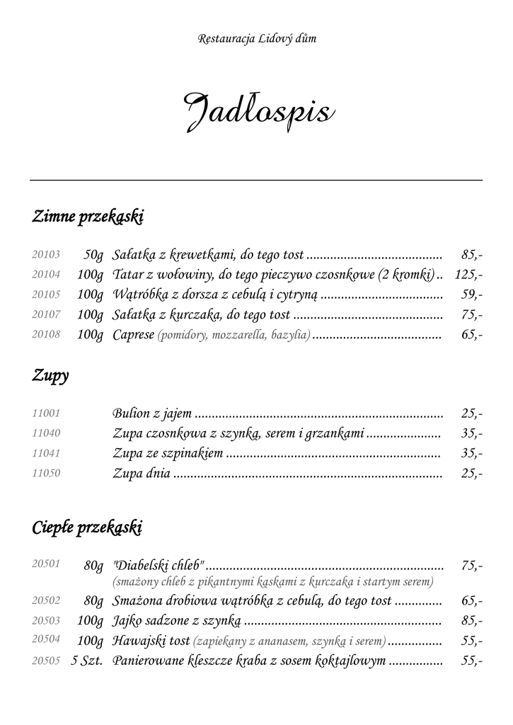 Jadłospis - Restaurace Lidový dům