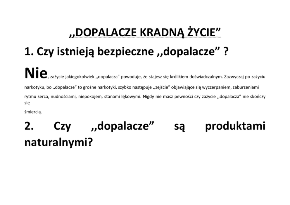 ,,DOPALACZE KRADNĄ ŻYCIE” 1. Czy istnieją bezpieczne